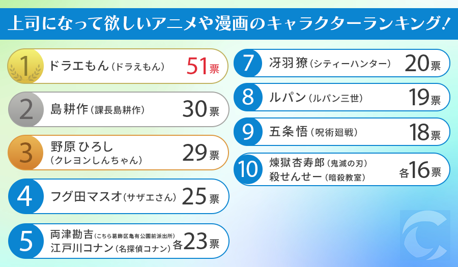 【50代以下の男女500人に調査】上司になって欲しいアニメや漫画のキャラクターランキング!