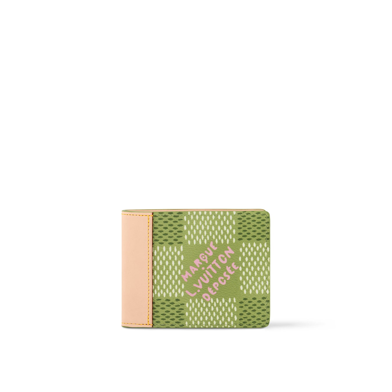 アーティスト タイラーとのコラボレーションにふさわしく、ダミエ・ゴルフ キャンバスにヌメ革でトリミングを施した「ポルトフォイユ・スレンダー」。市松模様のグリーンをピンクであしらった「L.Vuitton Marque Déposée」の文字が美しく引き立てます。紙幣用コンパートメントと8つのカードスロットを備えたスレンダーなデザインが特徴です。