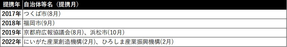 <PR TIMESによる地域情報の流通を目的とする提携先自治体等一覧>