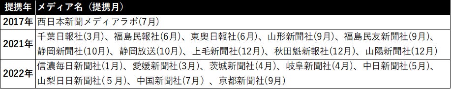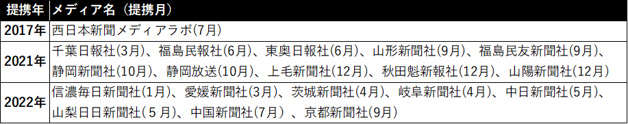 <PR TIMESによる地域情報の流通を目的とする提携先メディア一覧>