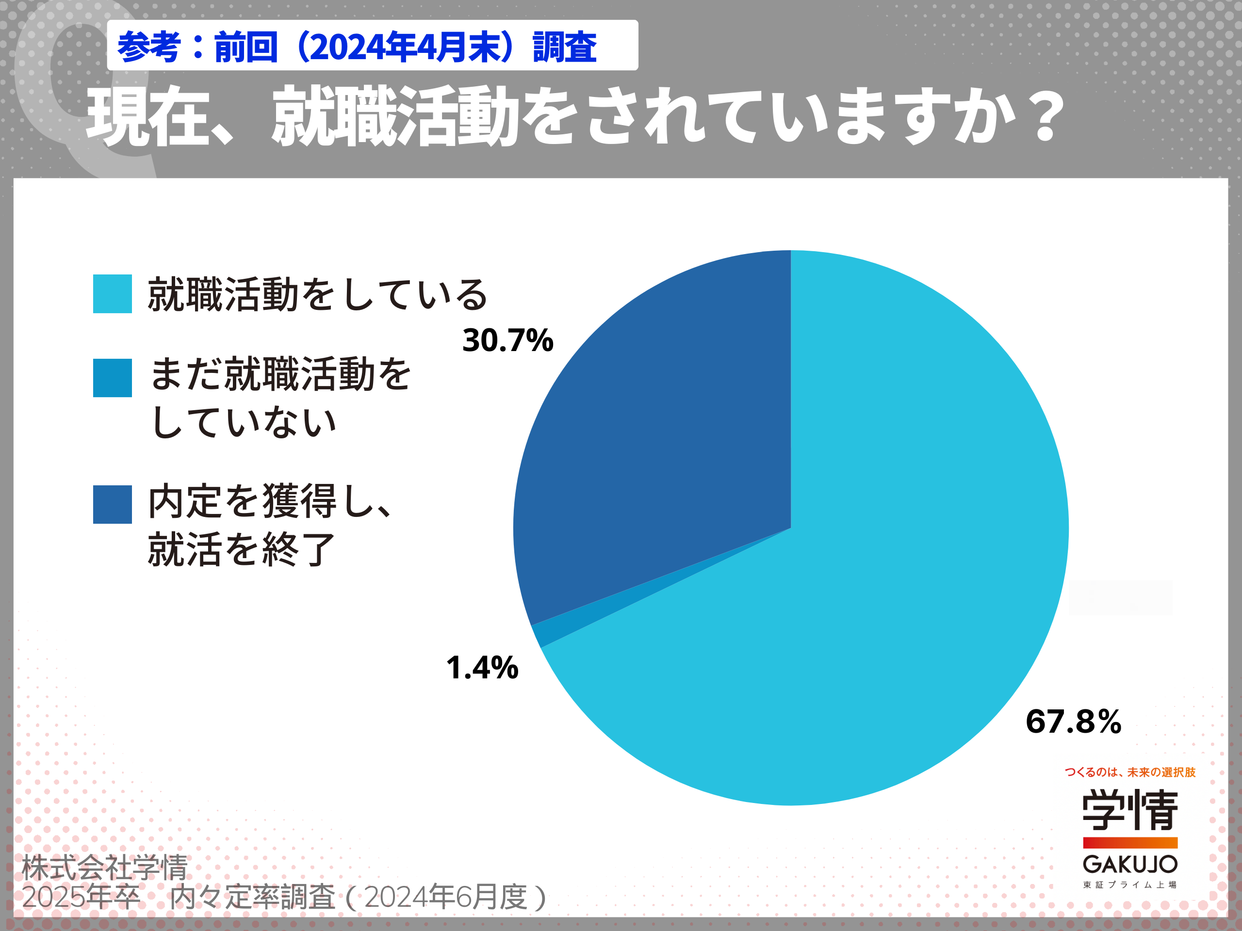 就職活動率は「53.4%」で前月より14.4ポイント減。“内定(内々定)を獲得し、就活を終了”した学生は「45.2%」と、半数近い結果となっています。