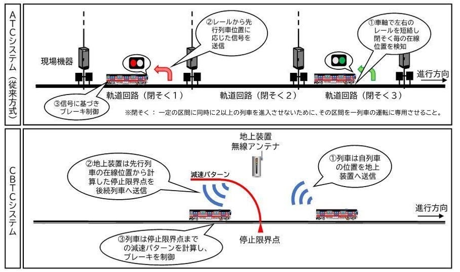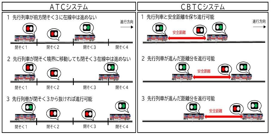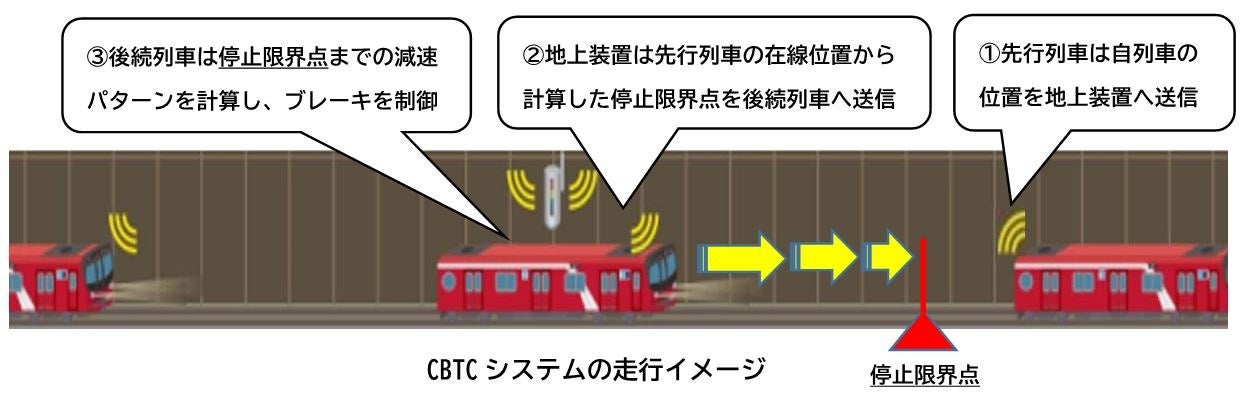 ために無線通信技術を利用する信号保安システムの一つです。地上装置が先行列車の位置などから後続列車が