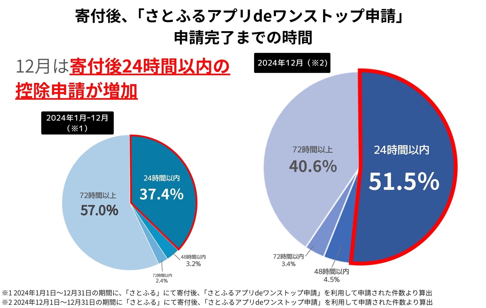 〜2024年12月は半数以上が寄付後24時間以内にワンストップ特例制度の申請を完了〜