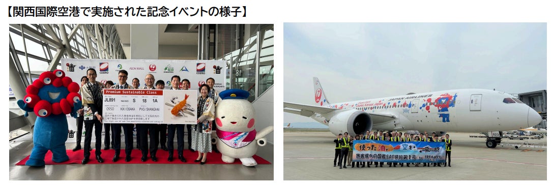 このたび、Fry to Fly Projectを通じて量産された国産SAFが初めて旅客便に供給され、JALのJL891便(関西発上海(浦東)行)がその第1号となりました。関西国際空港における旅客便へのSAF供給についても、これが初めてとなります。