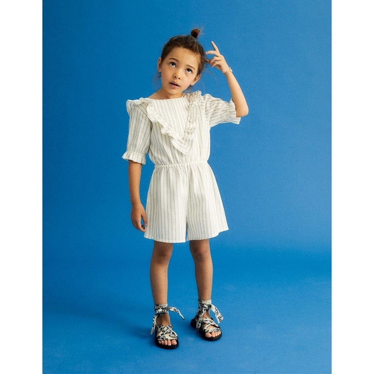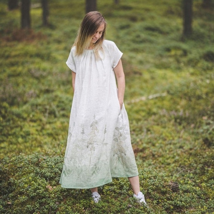 コットンとリネン素材のワンピースで、子どものころから馴染みたいエフォートレススタイル。