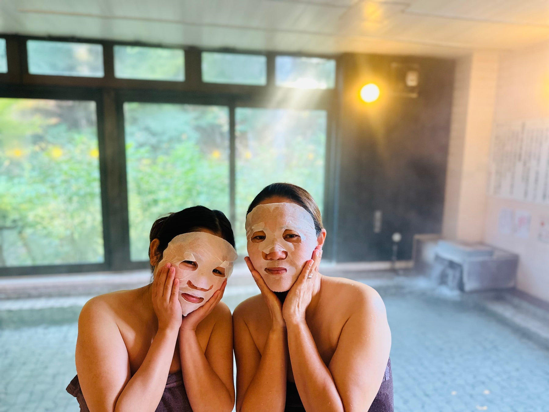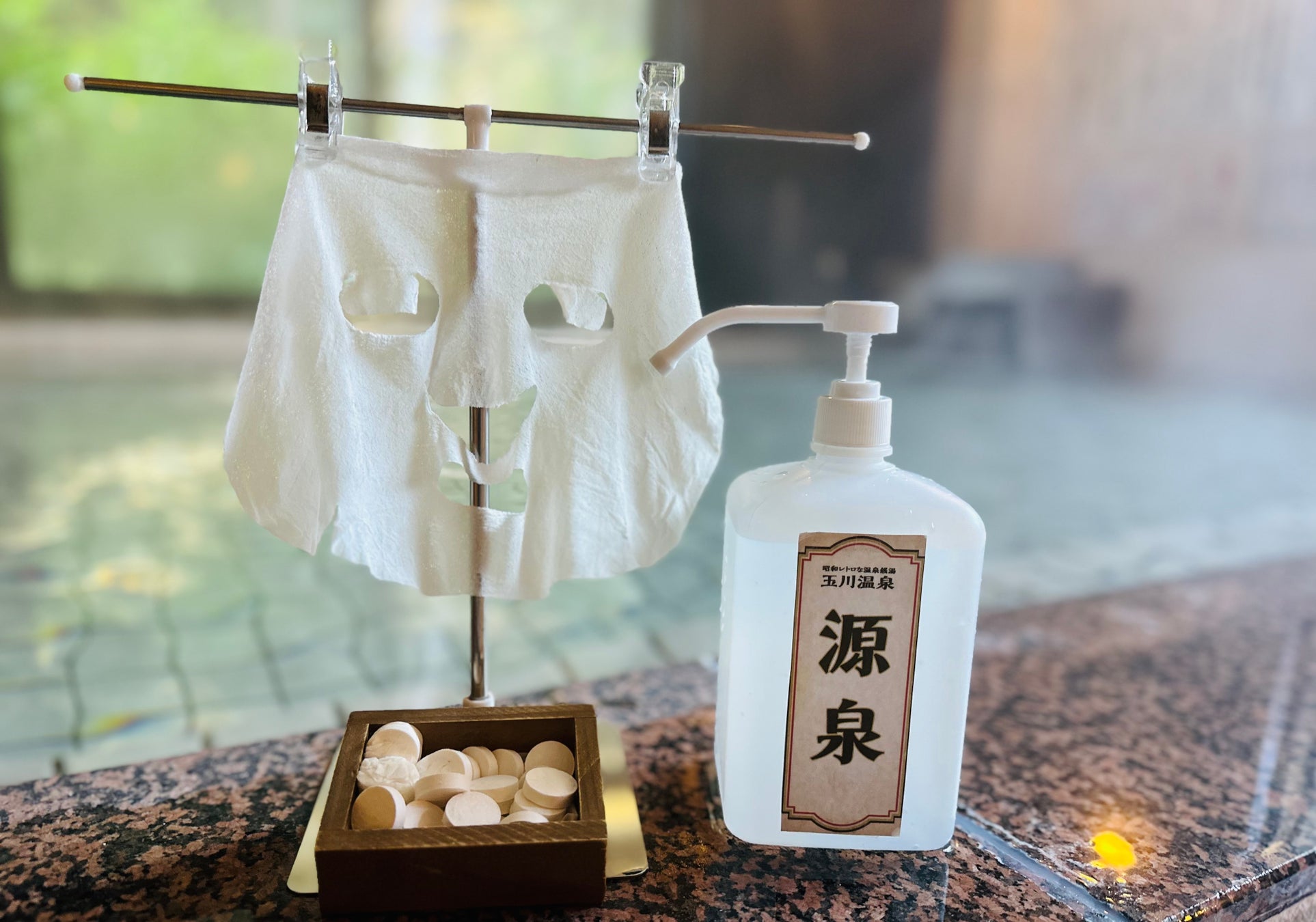 玉川温泉の泉質はPh10を誇る強アルカリ性単純温泉。肌表面の角質を落とす効果があるため「美肌の湯」と言われています。そんな泉質を活かし、源泉を染み込ませたパックを顔に乗せたまま温泉に浸かることができる「源泉パック」のサービスを風呂の日限定で無料提供しています。