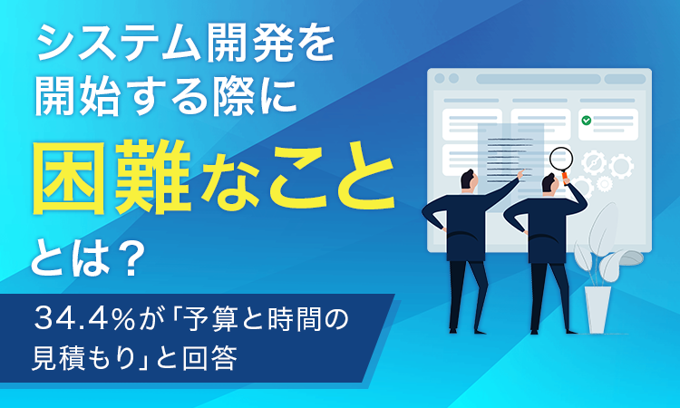システム開発を開始する際の困難な点として、34.4%の方が「予算と時間の見積もり」と回答しています。