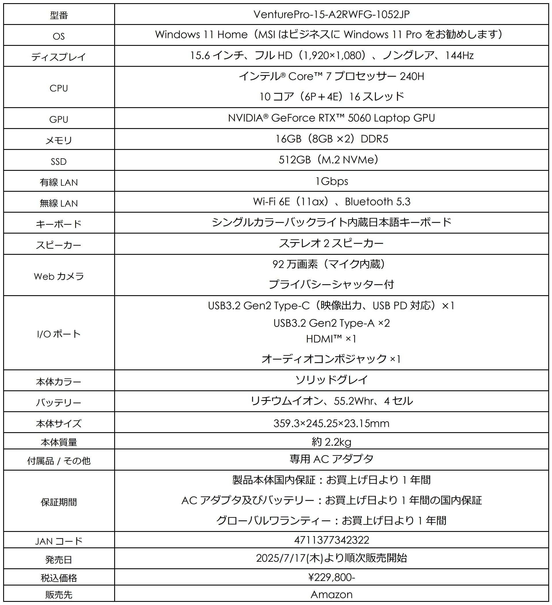 https://jp.msi.com/Business-Productivity/VenturePro-15-A2RWX