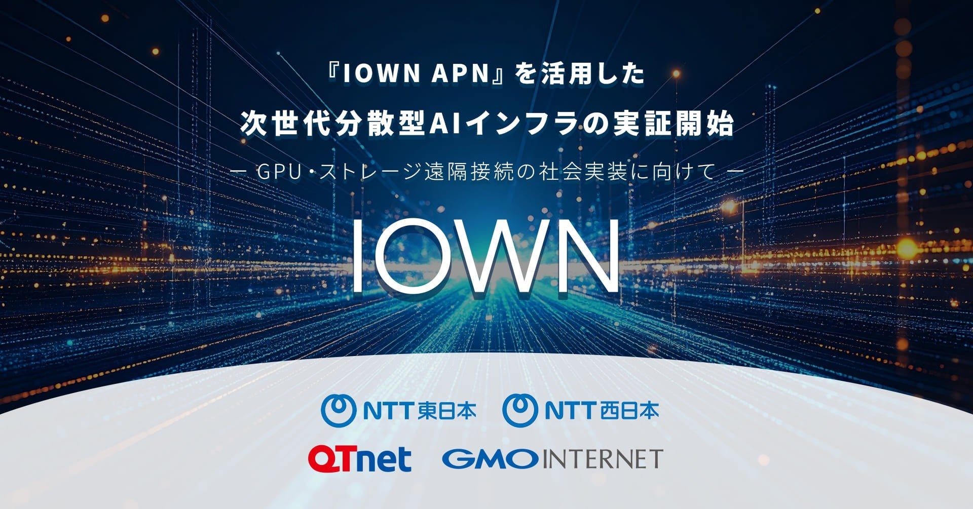 GMOインターネットグループのGMOインターネット株式会社(本社:東京都渋谷区、代表取締役 社長執行役員:伊藤 正、以下、GMOインターネット)、NTT東日本株式会社(本社:東京都新宿区、代表取締役社長:澁谷直樹、以下、NTT東日本)、NTT西日本株式会社(本社:大阪府都島区、代表取締役社長:北村亮太、以下、NTT西日本)、株式会社QTnet(本社:福岡県福岡市、代表取締役社長:小倉 良夫、以下、QTnet)は、共同実験協定を締結し、2025年10月2日(木)よりAI開発基盤となるGPUとストレージ間の遠隔利用に関する技術実証(以下、本実証)を開始します。なお、「GMO GPUクラウド」のGPU(AIの演算装置)と大容量ストレージ間を「IOWN(Innovative Optical and Wireless Network) APN(All-Photonics Network)」を活用し、県間接続をする初めての取り組みとなります。