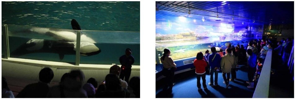 「ナイトアドベンチャー」は、飼育員のガイドで閉館後の水族館を約1時間かけて巡り、動物たちの寝姿を観察するナイトツアーです。鴨川シーワールドの夏の定番イベントとして人気が高く、冬季の募集は昨年が初めてでしたが、寒い時期にもかかわらず多くのお客様が参加し、大変好評であったことから今年も実施することになりました。冷たい海でも元気いっぱいなシャチやペンギンたちはどのように夜を過ごしているのでしょうか?シャチの吐く息が白く立ち上る、空気が澄んだ夜空のもとで、冬ならではのナイトアドベンチャーをお楽しみください。
