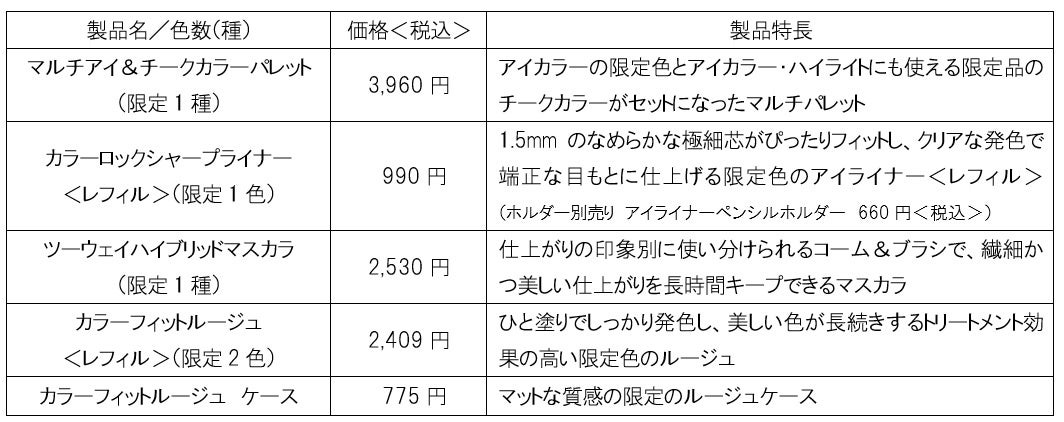 コンセプトは「Charm Myself(チャーム マイセルフ)」。深みのある季節のトレンドカラーで秋の表情を彩る限定のコレクションです。秋に向かって自然の力で色づく景色の中、秋空のように深い味わいのあるカラーと色づく紅葉をイメージしたアクセントカラーの調和で、魅力的な秋の表情を引き出します。