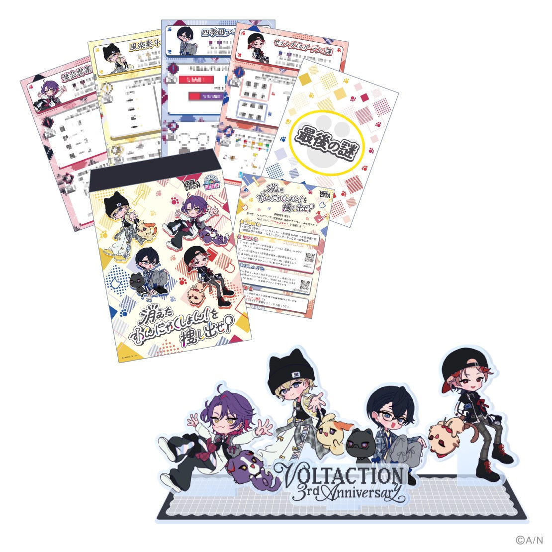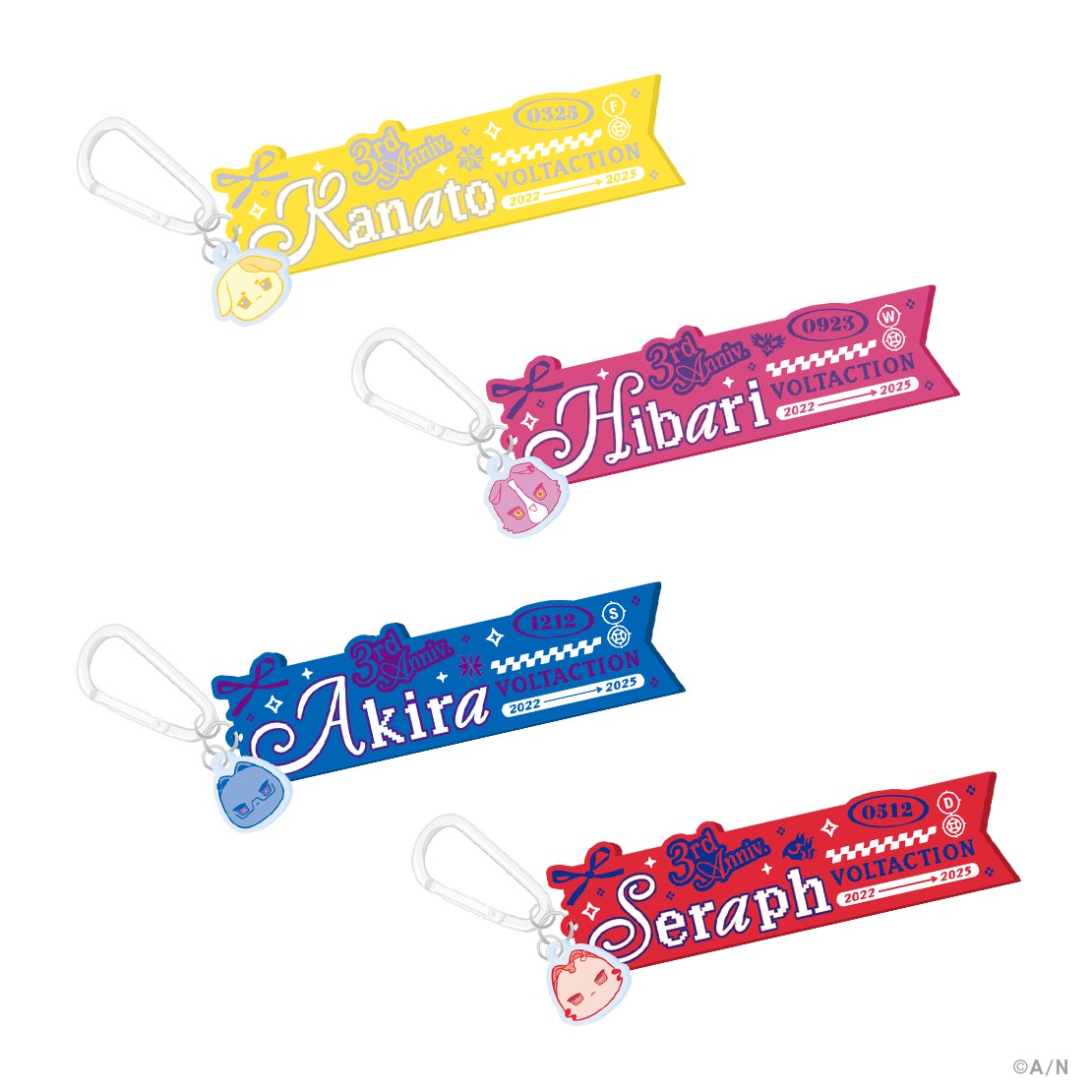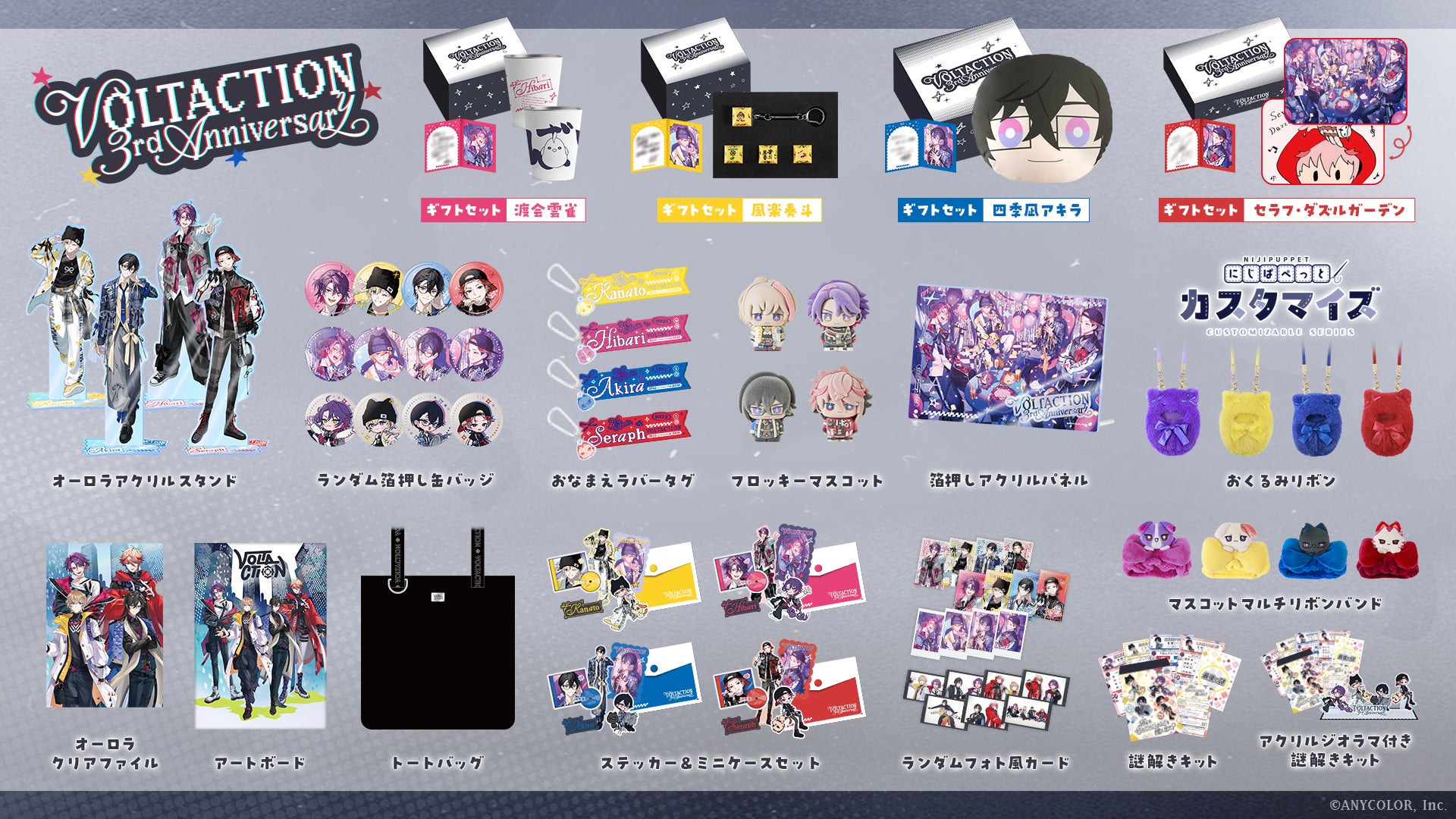 当社が運営するバーチャルライバーグループ「にじさんじ」所属の風楽奏斗、渡会雲雀、四季凪アキラ、セラフ・ダズルガーデンによるユニット「VOLTACTION」のデビュー3周年を記念した新グッズが登場!