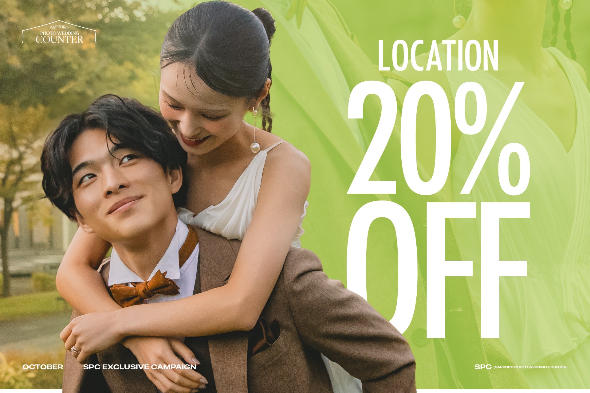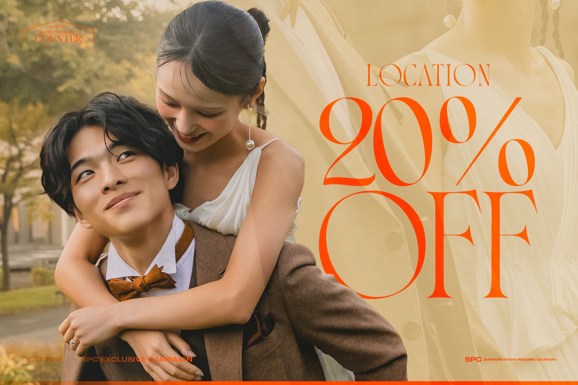 この度、札幌フォトウエディングカウンターからご成約いただくお客様に限り、期間限定で全ロケーションフォトウエディングプランを20%OFFでご提供いたします。憧れの北海道ロケーションフォトを、最高の条件で実現できるまたとない機会です。
