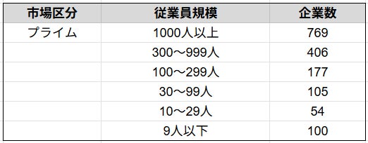 株式会社SalesNow(本社:東京都渋谷区、代表取締役:村岡功規、以下「当社」)は、国内540万社の企業情報を完全網羅した日本最大級のデータベース「SalesNow DB」より、プライム市場に上場する企業を従業員数別に分類し、その分布を集計しました。