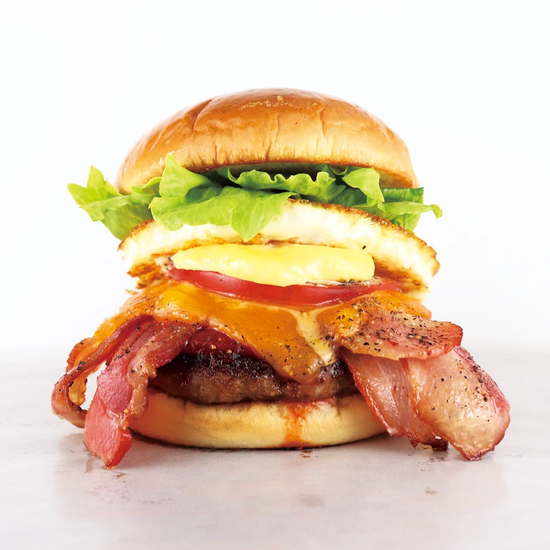黒毛和牛100%のパティと120時間かけて作った自家製ベーコンをサンド!