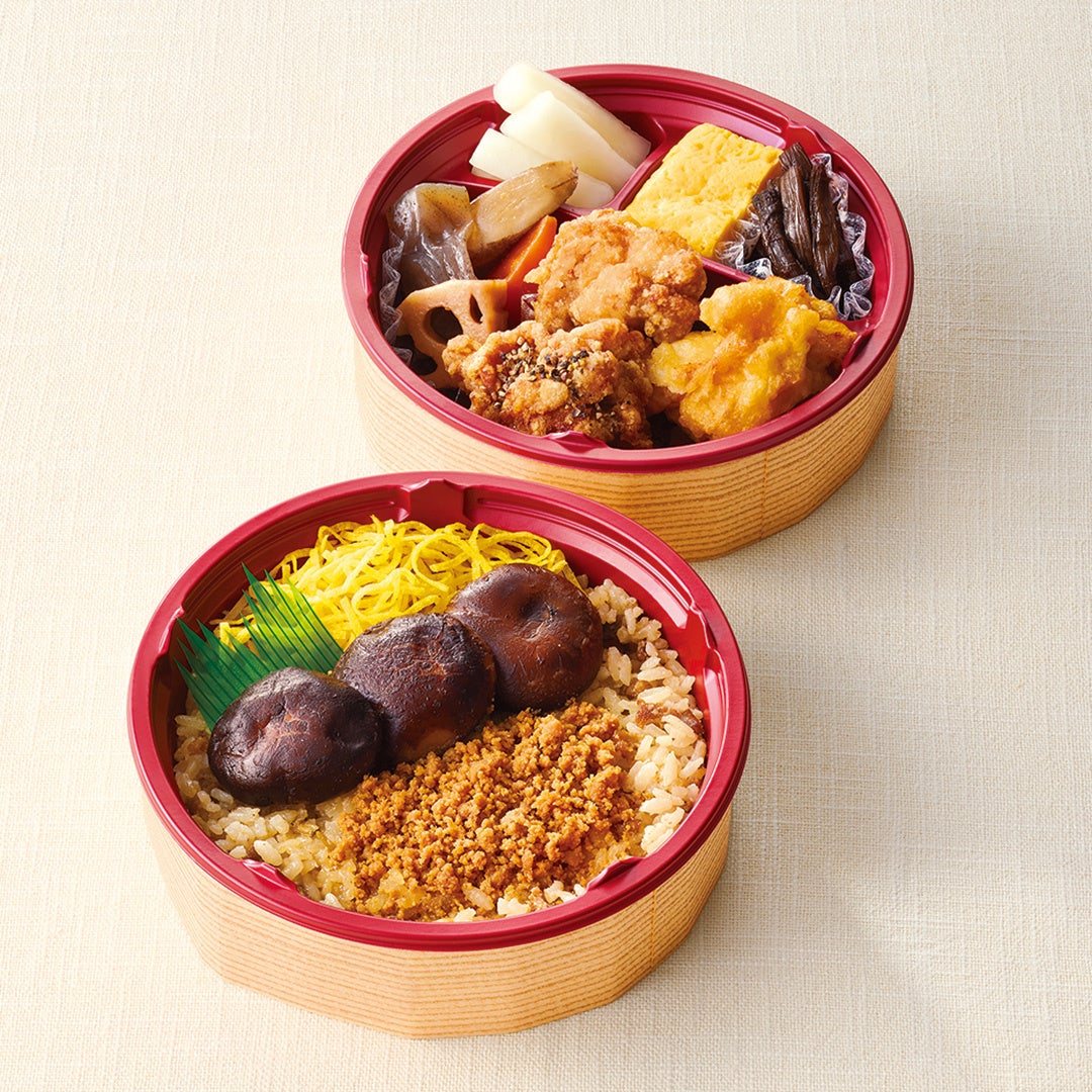 吉野鶏めしとブランド原木椎茸「トヨチー二」が入った豪華な2段弁当