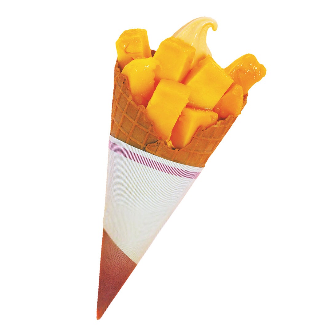 マンゴーのソフトクリームに、たっぷり果肉をトッピング!【玉川高島屋初登場】<実演販売>