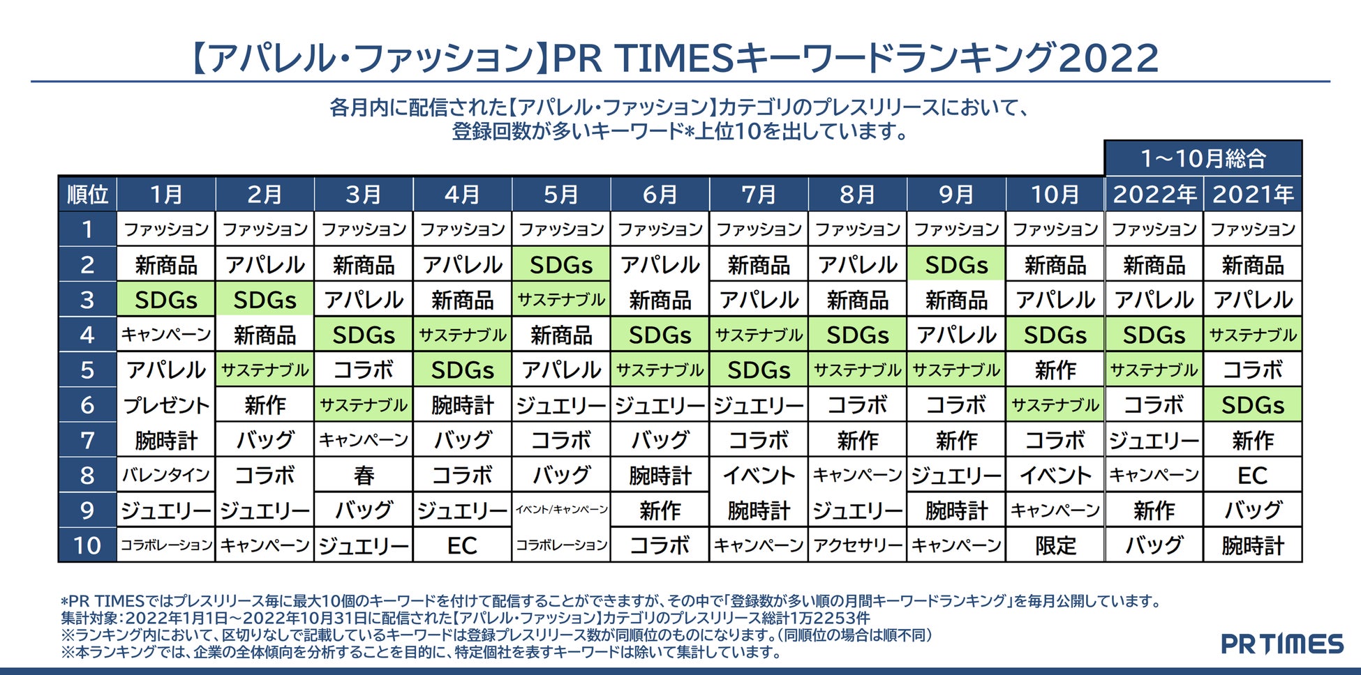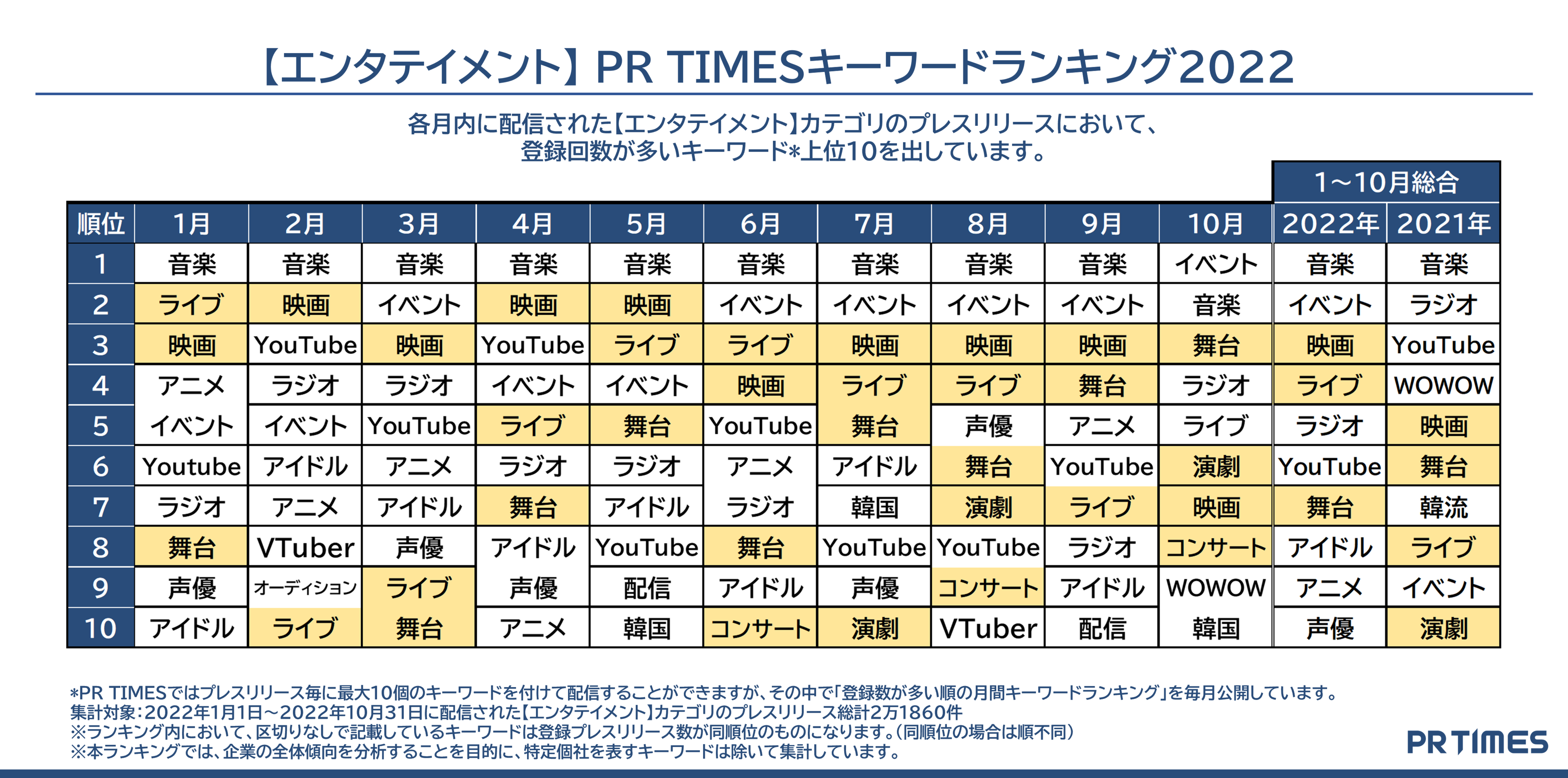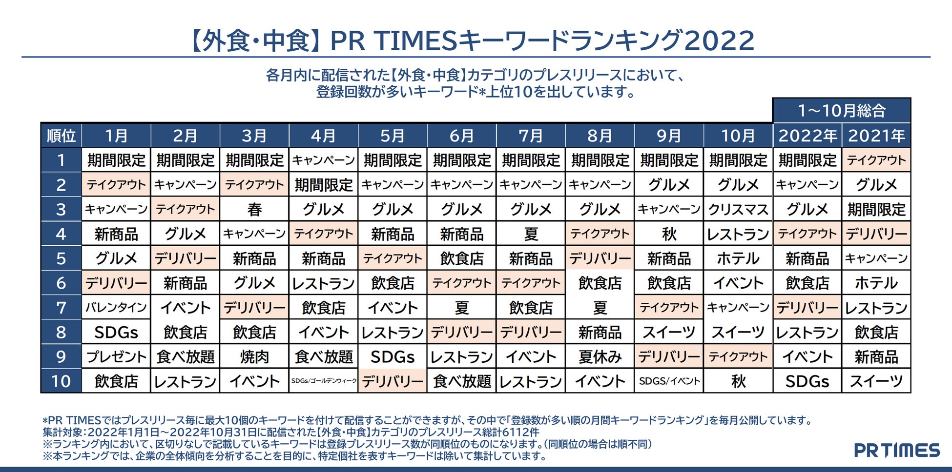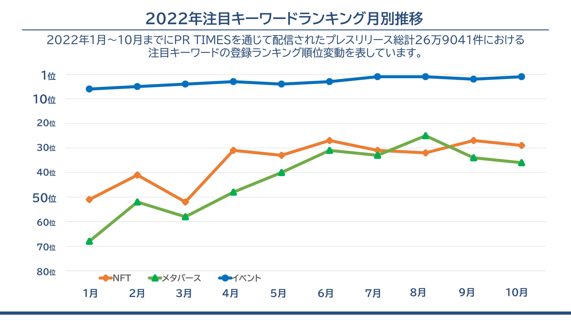 PR TIMESキーワードランキング2022(総合)では、キーワードが登録されたプレスリリース件数で2022年1月~10月の総合ランキングを集計しました。