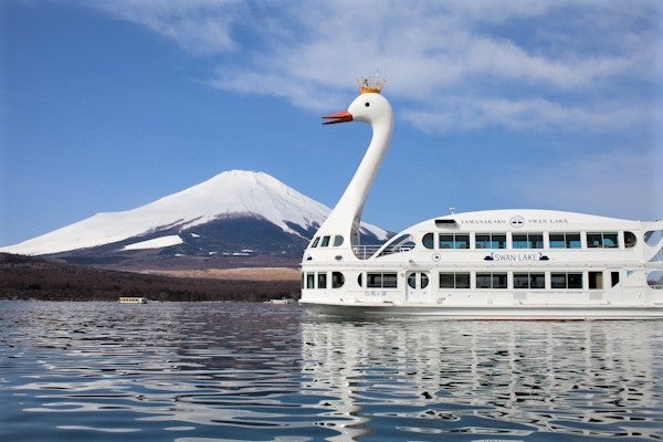 富士五湖の一つ、山中湖で運航する遊覧船「白鳥の湖号」は、「日本一の富士の麓 山中湖に 日本一美しい白鳥を浮かばせよう」をコンセプトに、木のぬくもりあふれる居心地の良い船内から雄大な富士山と山中湖の絶景を愛でながら約25分間の湖上クルージングをご堪能いただけます。また、船内には、景色を楽しむための双眼鏡や船長気分を味わえるハンドル付の子供展望席など、山中湖を楽しむためのアイデアがふんだんに盛り込まれており、子どもからお年寄りまで老若男女を問わずお楽しみいただけます。なお、船のデザイン監修は、JR九州「ななつ星」や「水陸両用バス KABA BUS」などを手掛けた工業デザイナー・水戸岡鋭治氏が手掛けております。