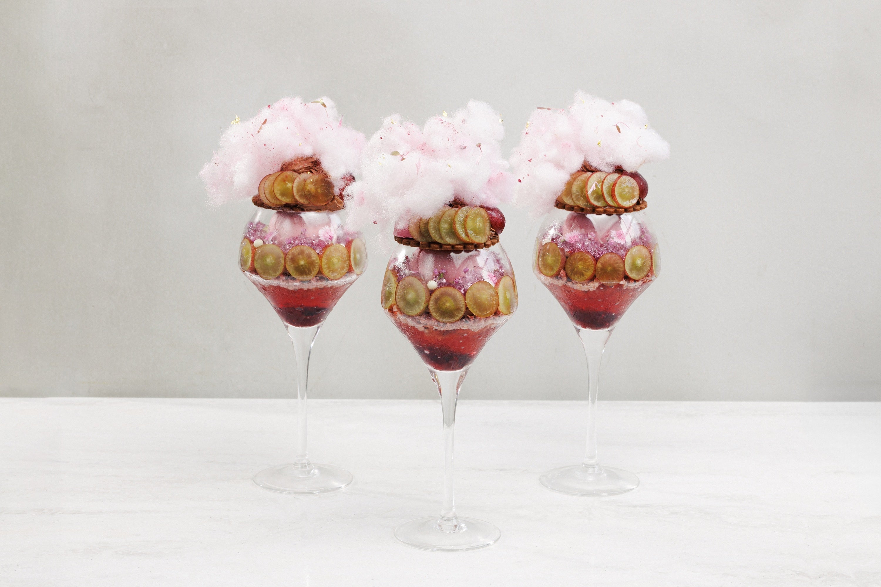 稀少なクイーンルージュを使用し、秋桜や撫子、コキアなどの秋の花々をイメージした葡萄パフェ。葡萄にショコラとベリーを合わせ、ほんのりと香るハーブティーとシナモンの香りとともにお楽しみいただけます。