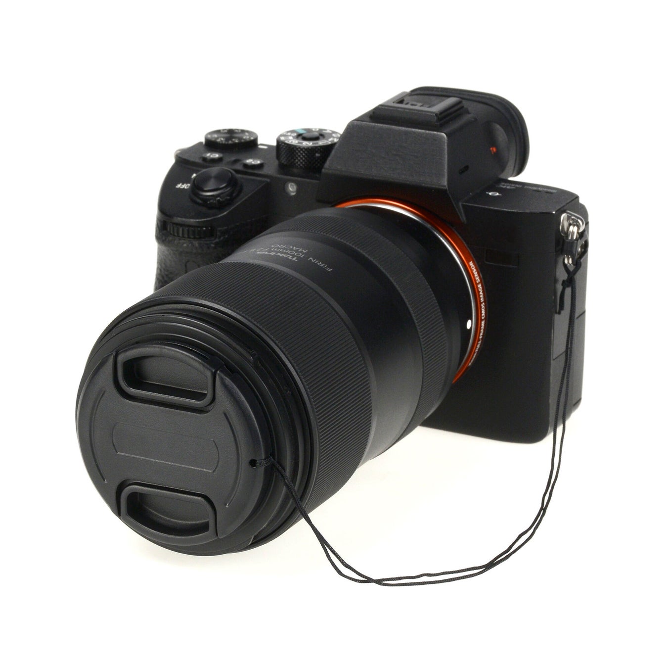 キャップに付いている紐をカメラボティのストラップ取付部に取り付けることで、キャップの紛失を予防。