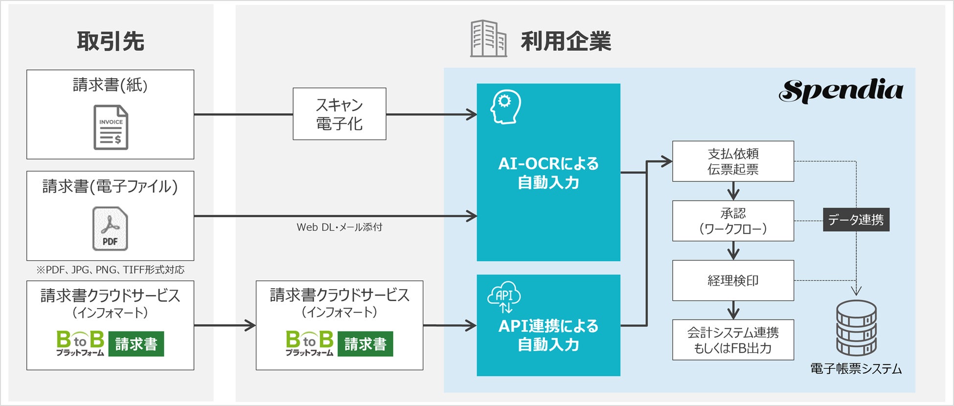 TISインテックグループのTIS株式会社(本社:東京都新宿区、代表取締役社長:岡本 安史、以下:TIS)は、経費精算クラウドサービス「Spendia」にAI-OCRによる読み取り機能と、株式会社インフォマート(本社:東京都港区、代表取締役社長:中島 健、以下:インフォマート)の請求書クラウドサービス「BtoBプラットフォーム 請求書」データの取り込み機能を実装したことにより、請求書支払業務のさらなる効率化を実現したことを発表します。