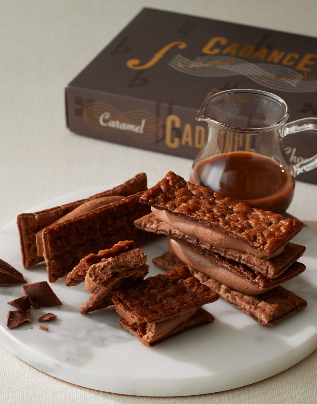 ほんのりビターなショコラキャラメルガレット。深みのあるショコラガレット生地に、絶妙な甘さのショコラキャラメルを流し込みました。サクサクの生地と、とろりとした口どけのショコラキャラメルが一体となった、余韻に浸れる味わいです。
