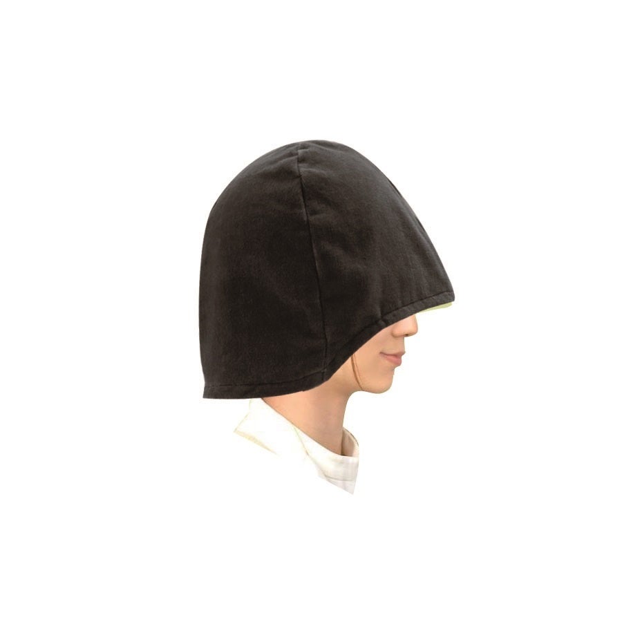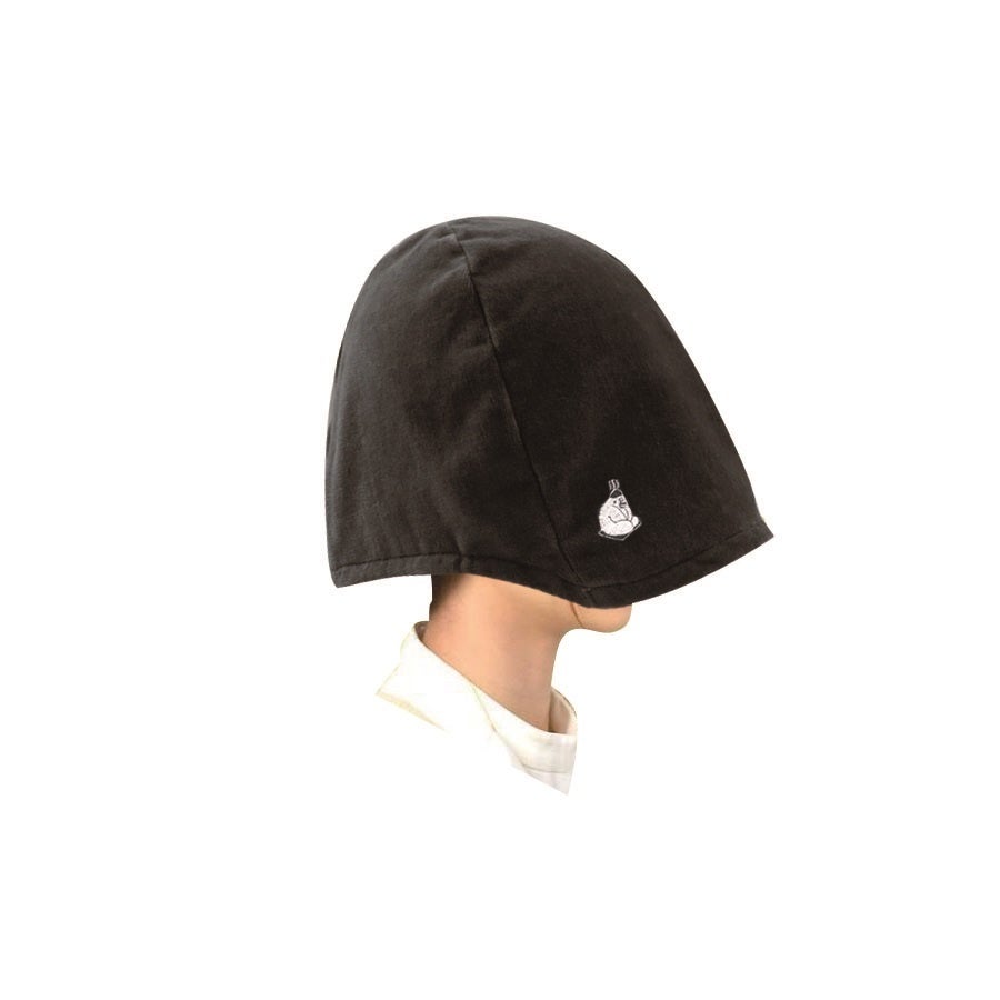 顔がすっぽり隠れる大きめな作りのサウナハット。前後を入れ替えて浅めにかぶることも可能。