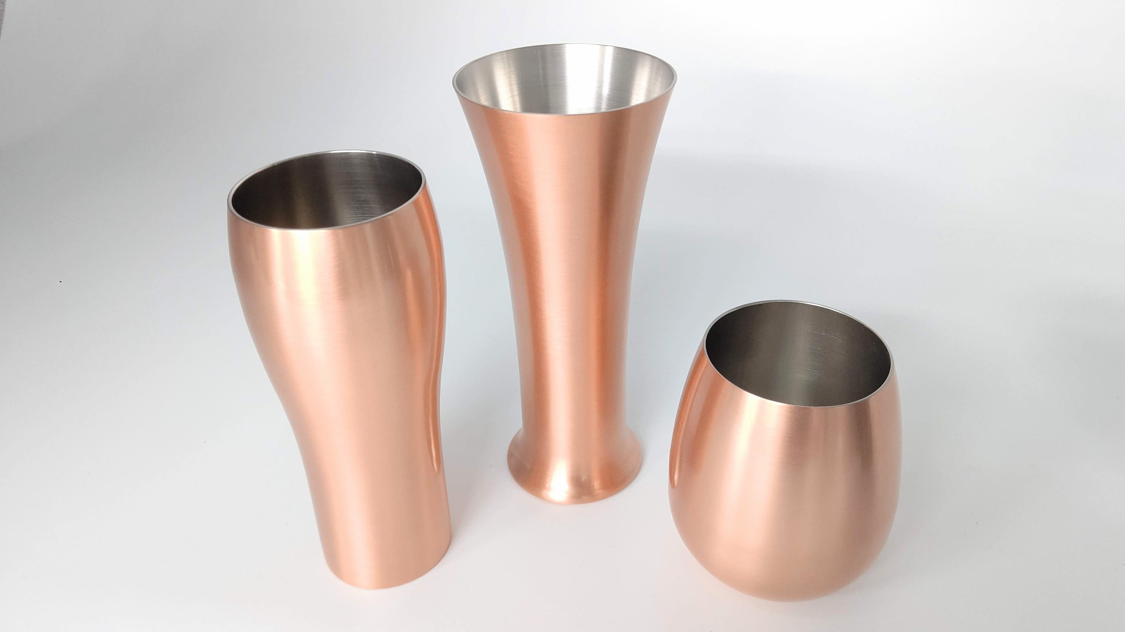 エールや白ビール、ピルスナーといった異なる味わいのビールに合うように作られた銅製タンブラー。