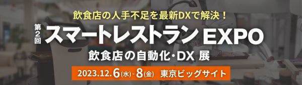 第2回 スマートレストランEXPO [東京] 会期:2023年12月6日(水)~12月8日(金) 会場:東京ビッグサイト
