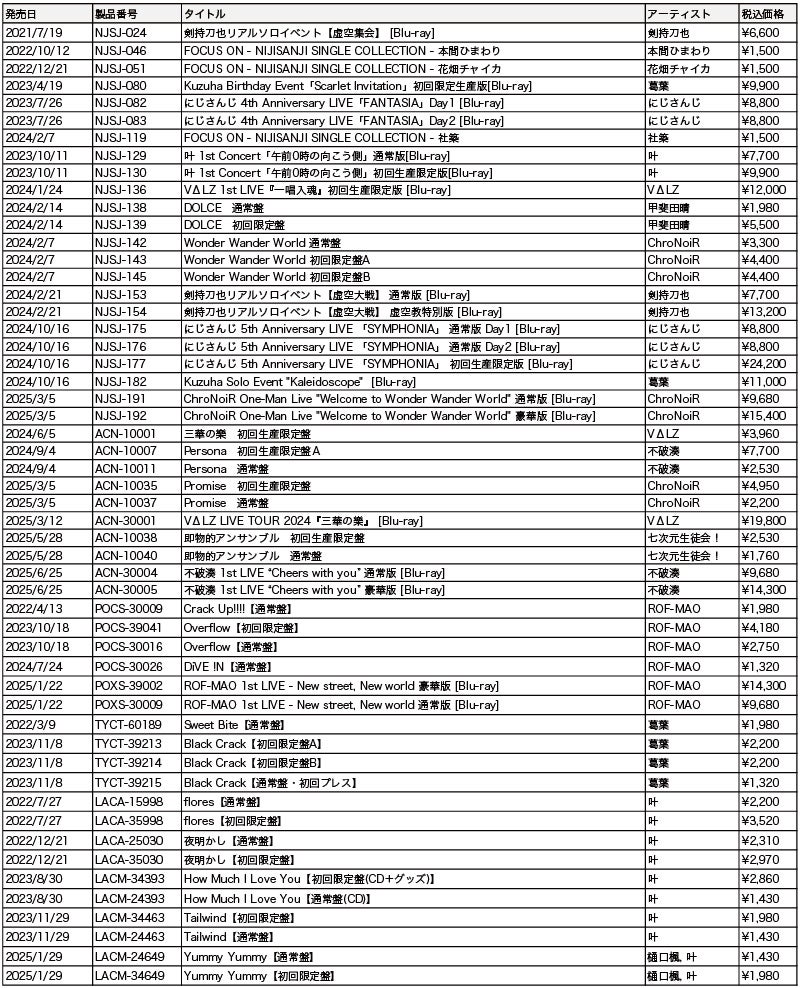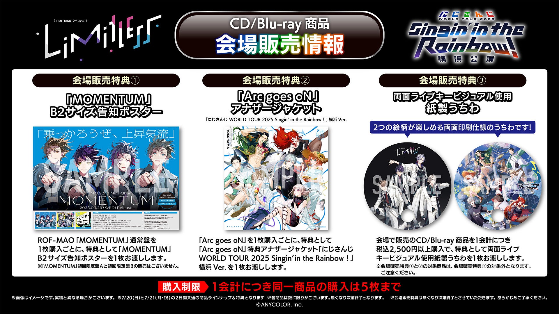 『ROF-MAO 2nd LIVE - Limitless』『にじさんじ WORLD TOUR 2025 Singin’ in the Rainbow!横浜公演』会場販売CD/Blu-ray情報公開!