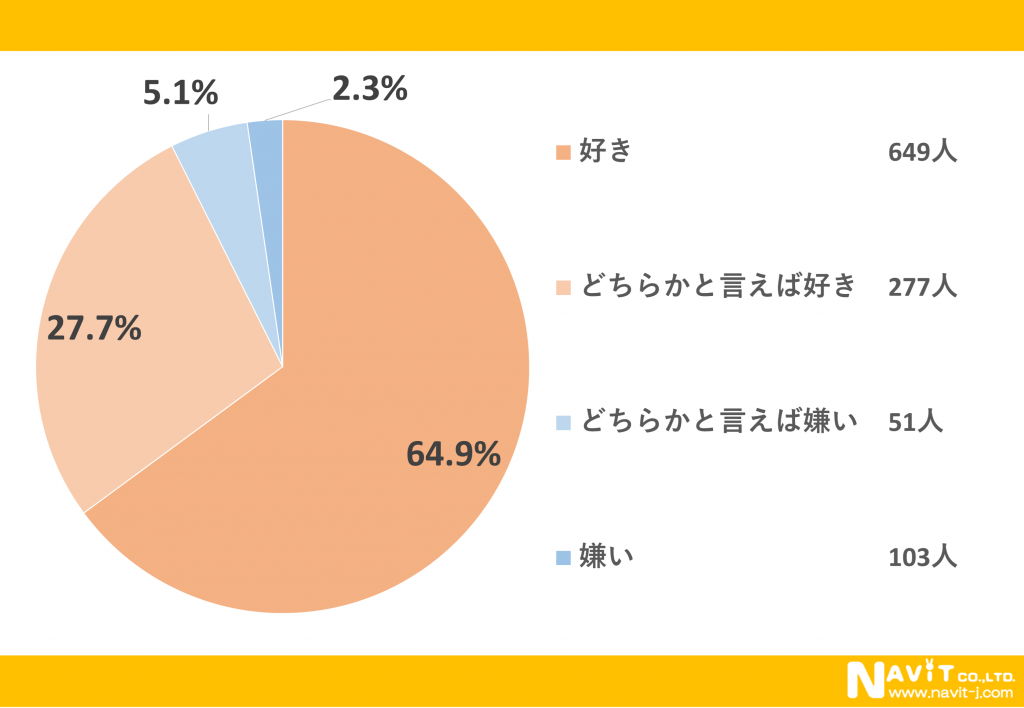 身近な食材のチーズですが、チーズが「好き」という方が64.9%もいらっしゃいます。「どちらかと言えば好き」の27.7%と合わせると実に92.6%もの人がチーズが好きという回答をされています。