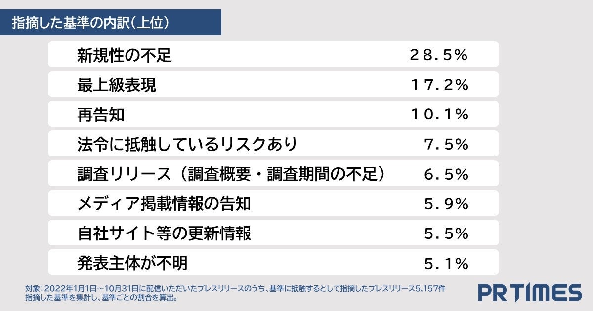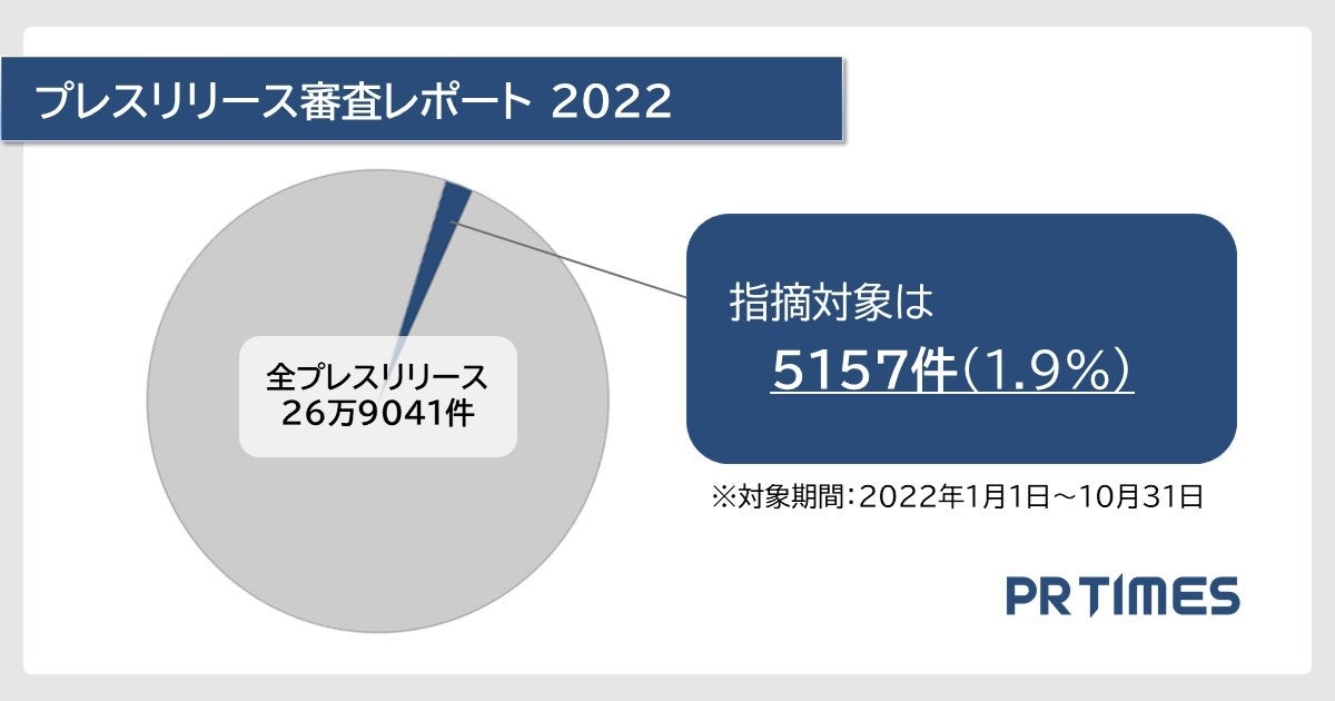 【PR TIMES初公開】 プレスリリース審査レポート2022 指摘対象は5157件(1.9%)、最多は「新規性の不足」