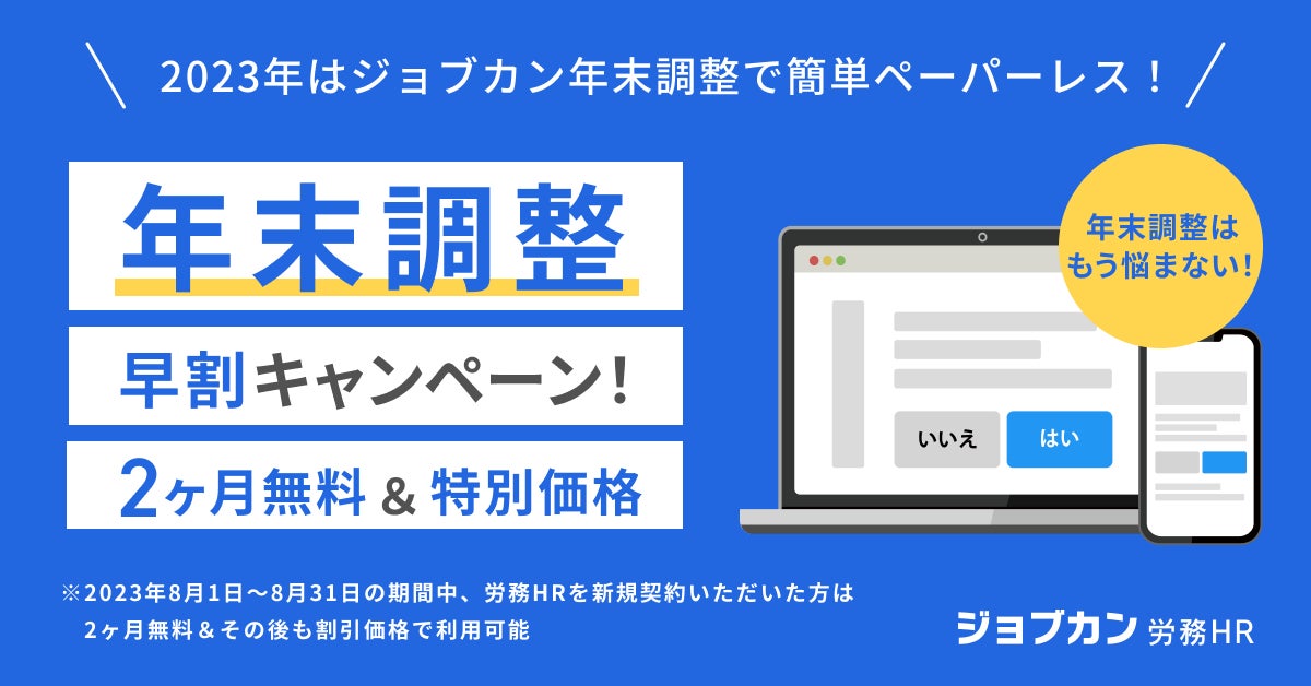 『ジョブカン労務HR』が年末調整の電子化に向けて早期移行準備を計画的にサポート!今年も大幅アップデート予定の「ジョブカン年末調整」早割キャンペーン実施!