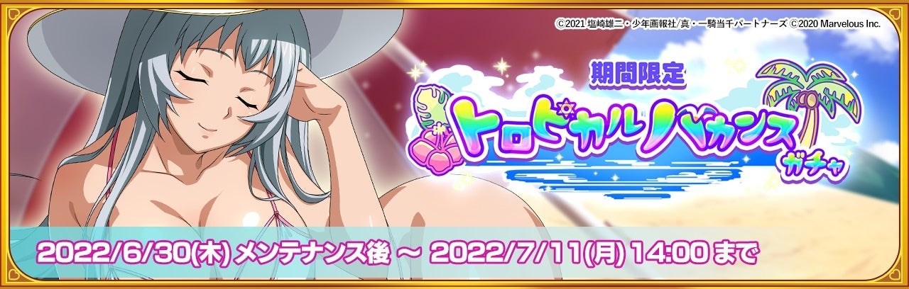 株式会社マーベラス(代表取締役社長 佐藤澄宣/所在地:東京都品川区)は、原作が20周年を迎えた人気シリーズ「一騎当千」のAndroid/iOS向けゲームアプリ『一騎当千エクストラバースト』で、2022年6月30日(木)より、新イベント「南の島のバンバン☆シューティング」を開始したことをお知らせいたします。