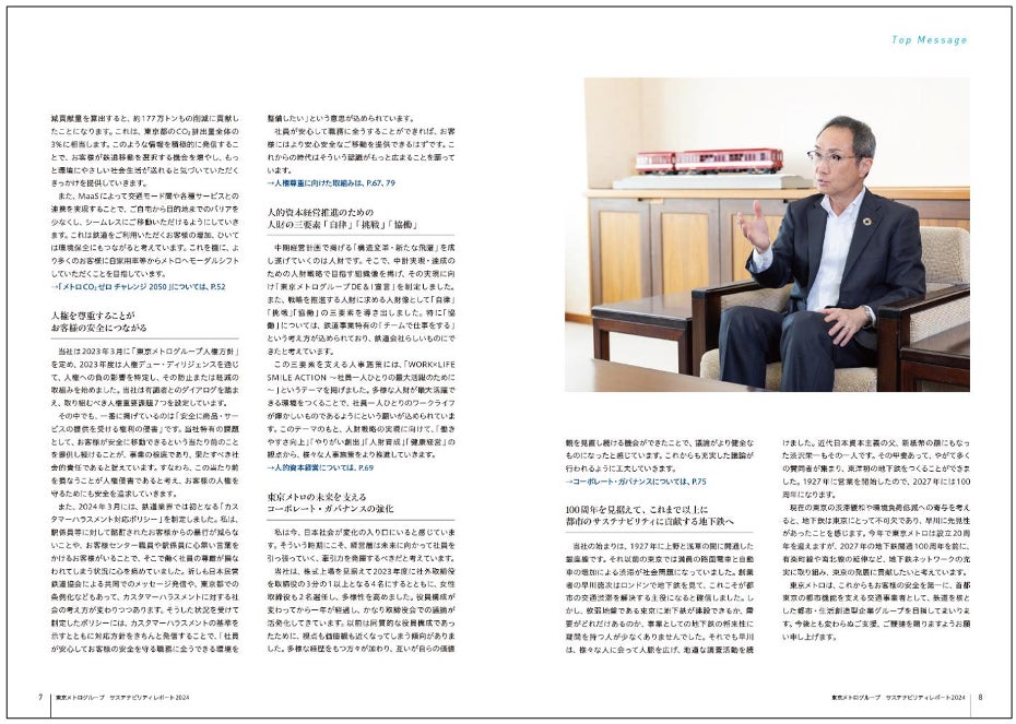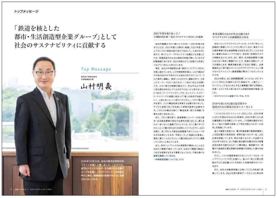 東京地下鉄株式会社(本社:東京都台東区、代表取締役社長:山村 明義、以下「東京メトロ」)は、東京メトログループのサステナビリティに対する取組みを広くお伝えすることを目的とした「サステナビリティレポート2024」を、本日2024年12月19日(木)に発行します。