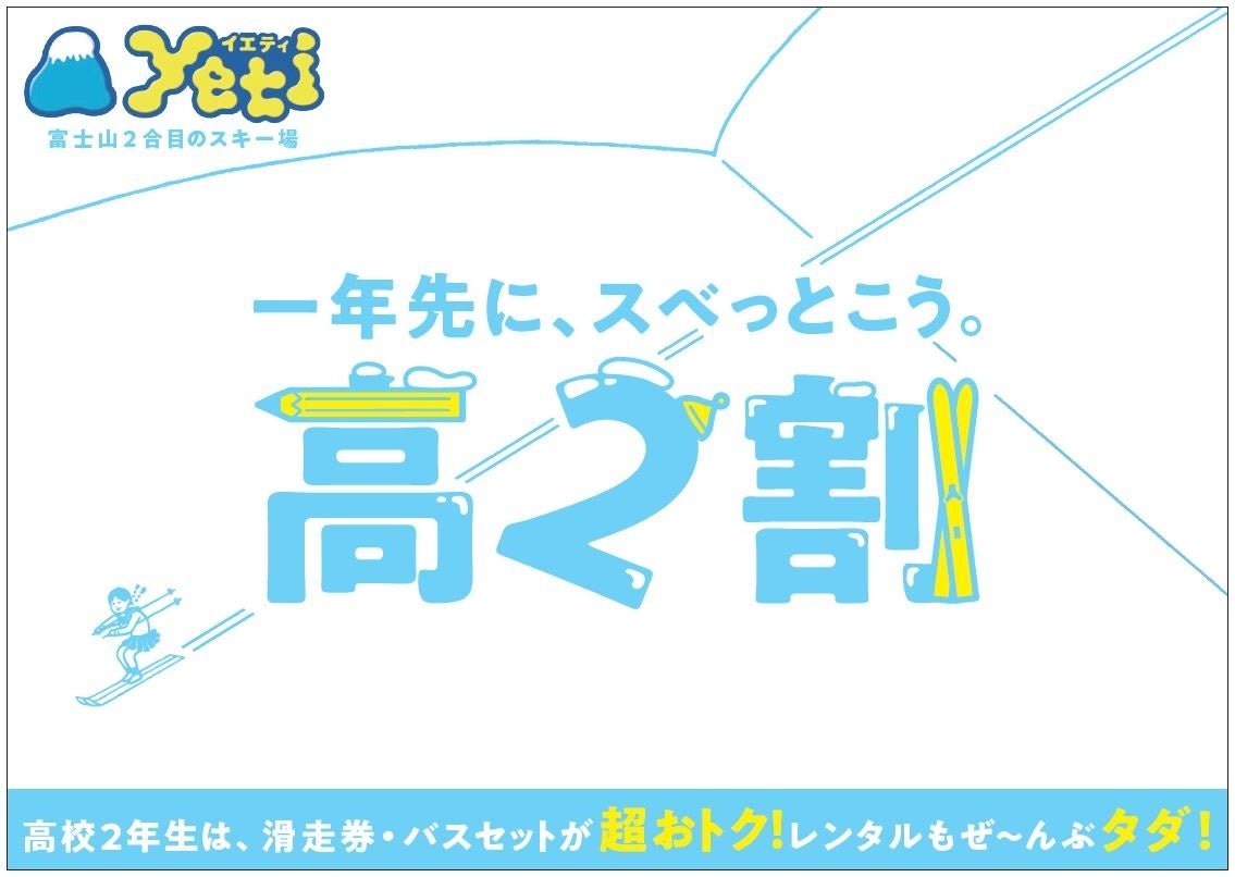イエティが“高2”を全力えこひいき!たったの2,000円で滑走券をご購入いただけるほか、首都圏エリア、静岡県内発着の便利なバスセット券も破格でご用意しております。