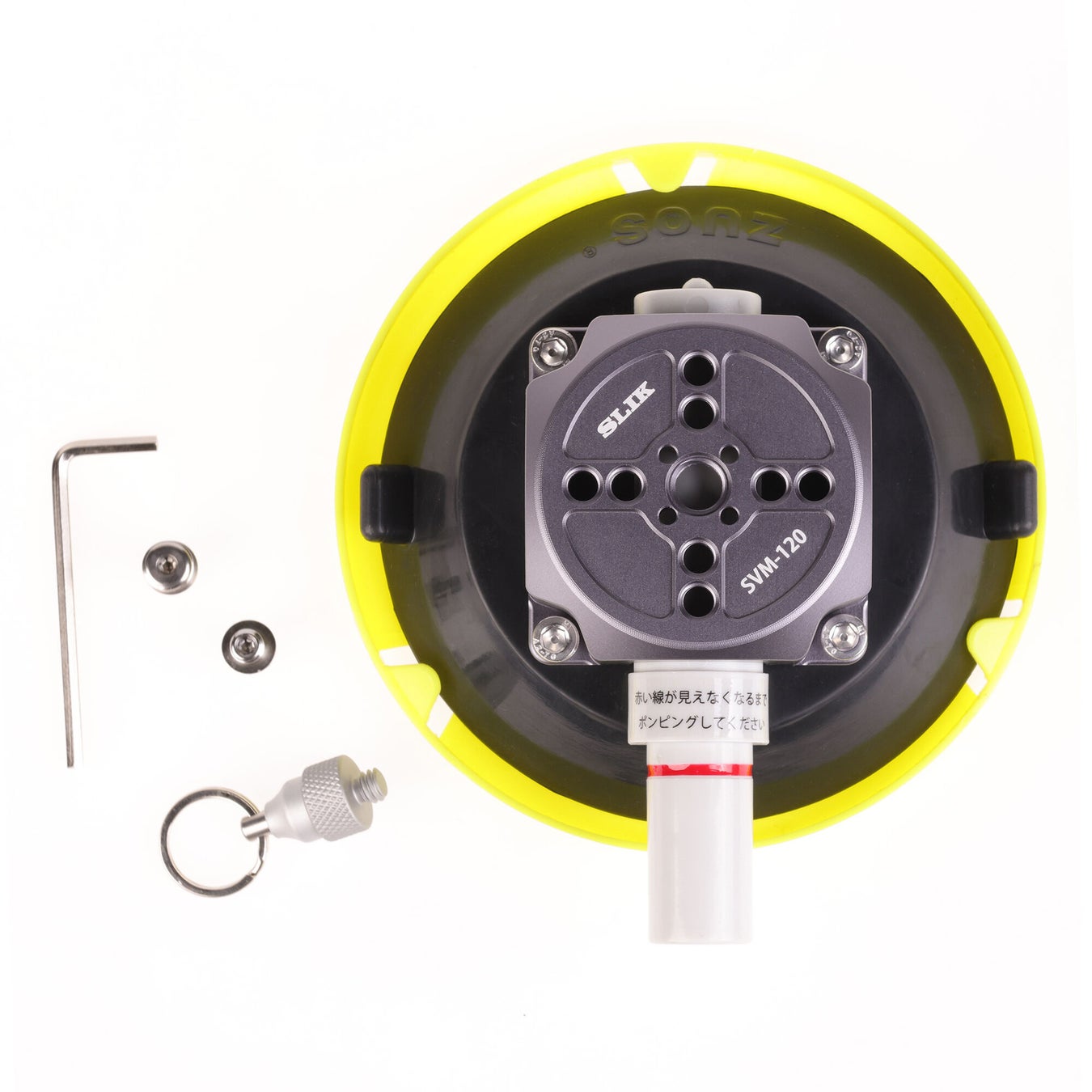 ガラスや金属面などフラットな面に取り付けることができる、サクションタイプのカメラマウント「スリック サクションベース」