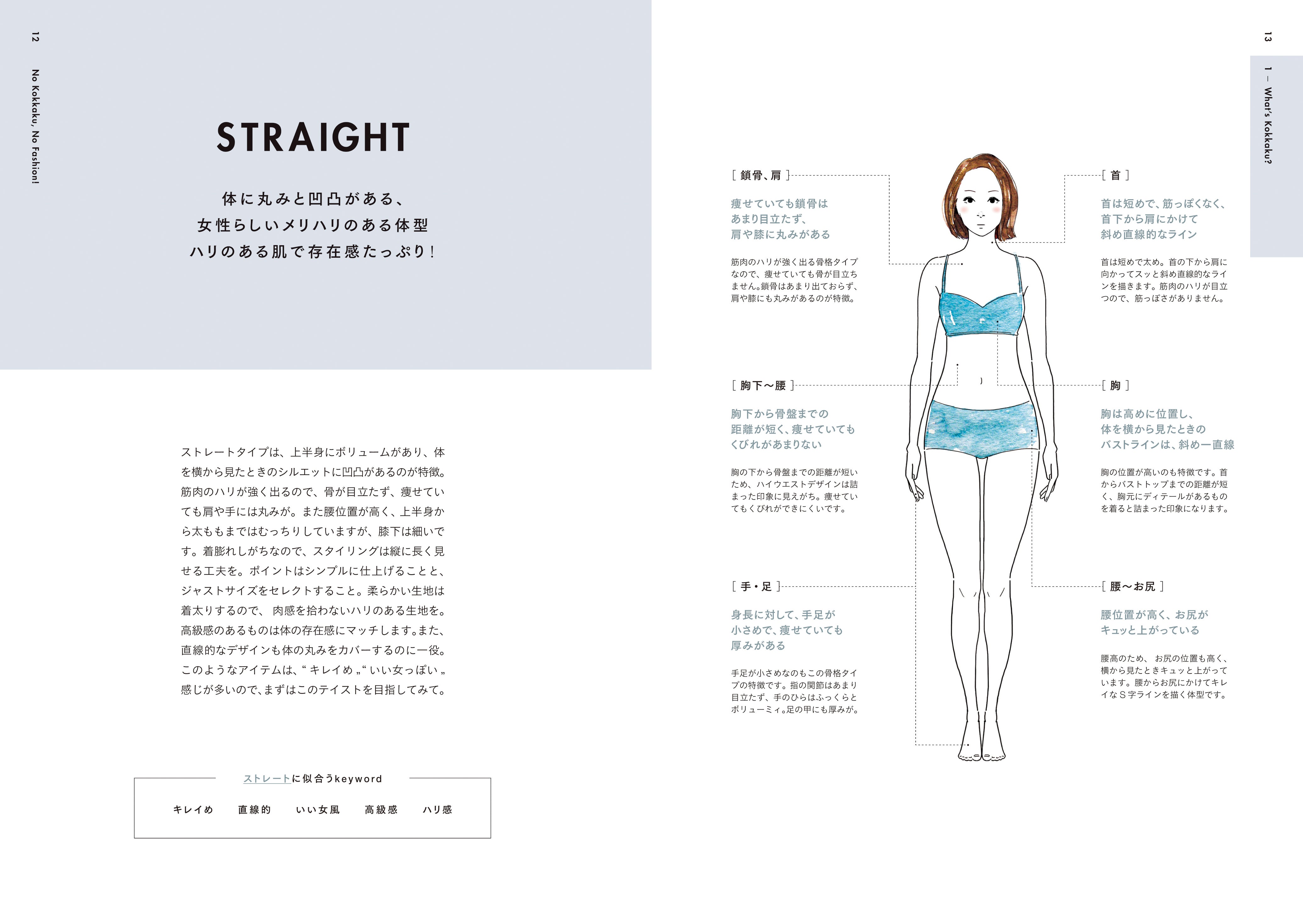 オシャレを制限するのではなく、 骨格診断= 自分の魅力をより引き出すものとして、具体的なアイディアが詰まった一冊です。