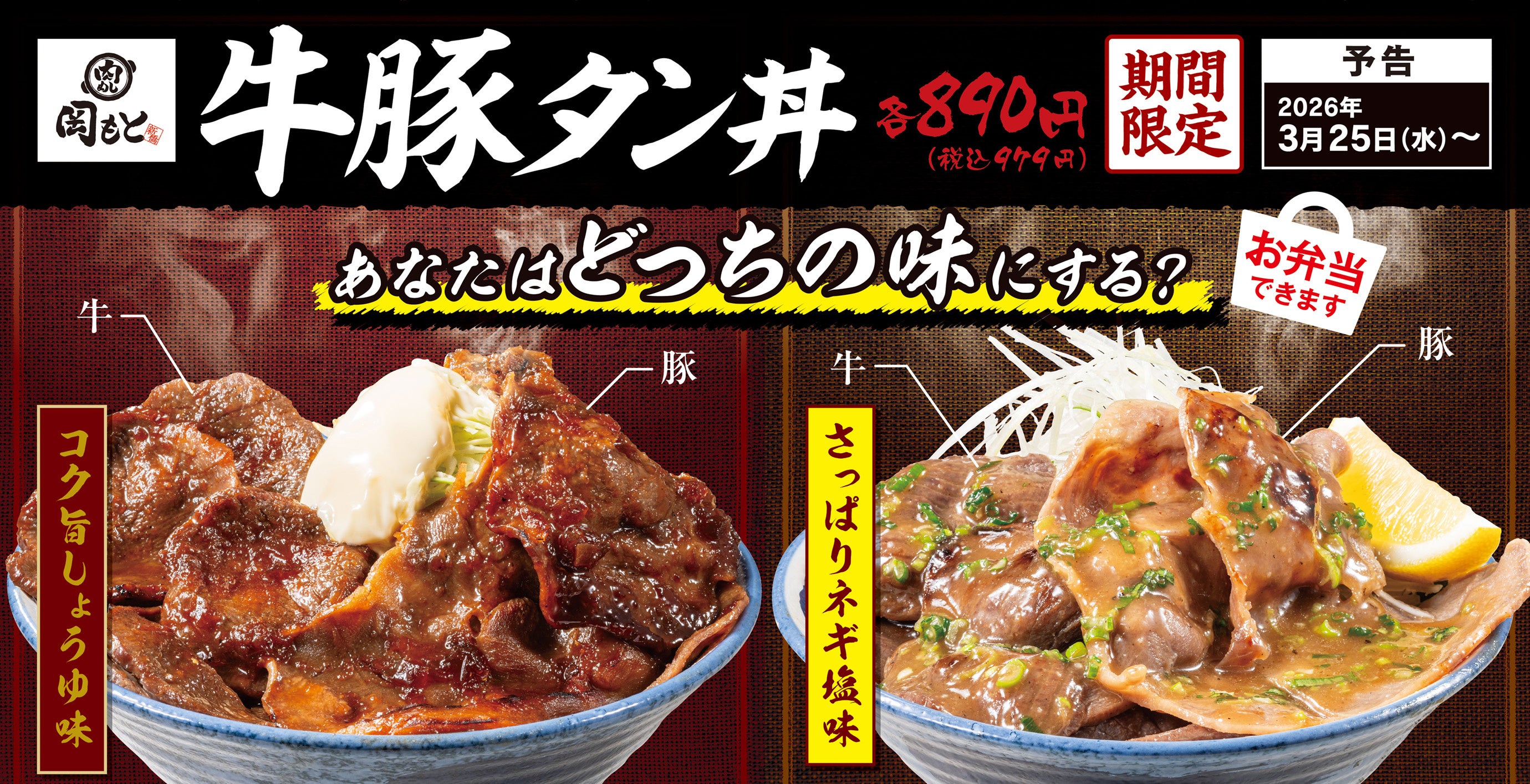 肉めし専門店ならではの「牛豚タン丼」。2026年3月25日(水)販売開始!