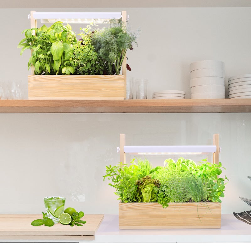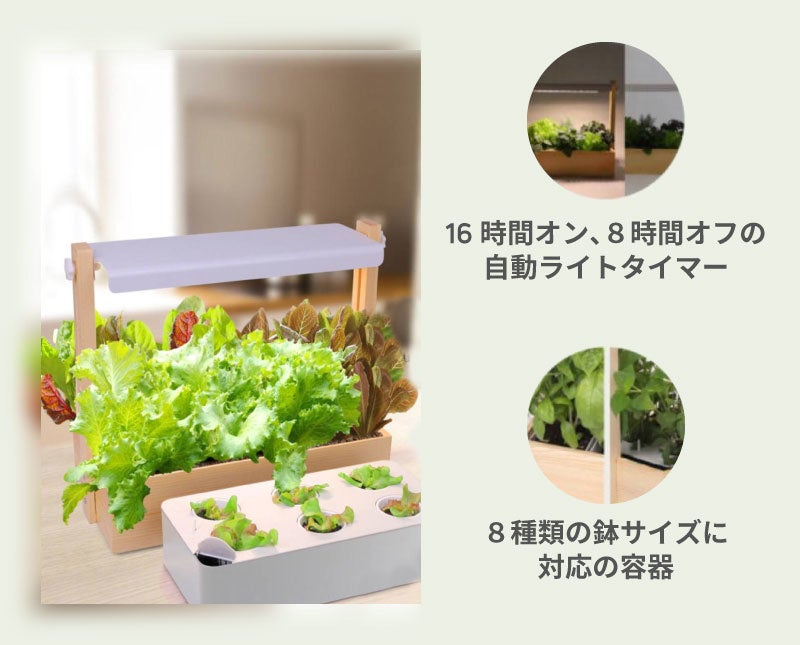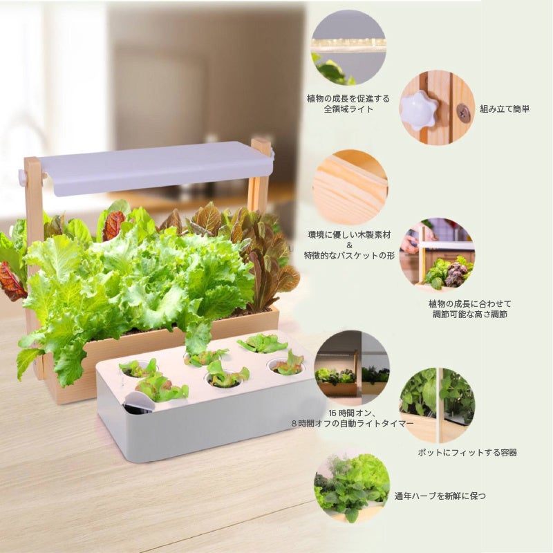 - オールシーズン栽培OK、温かみがあるウッド調のお家用ガーデンキット