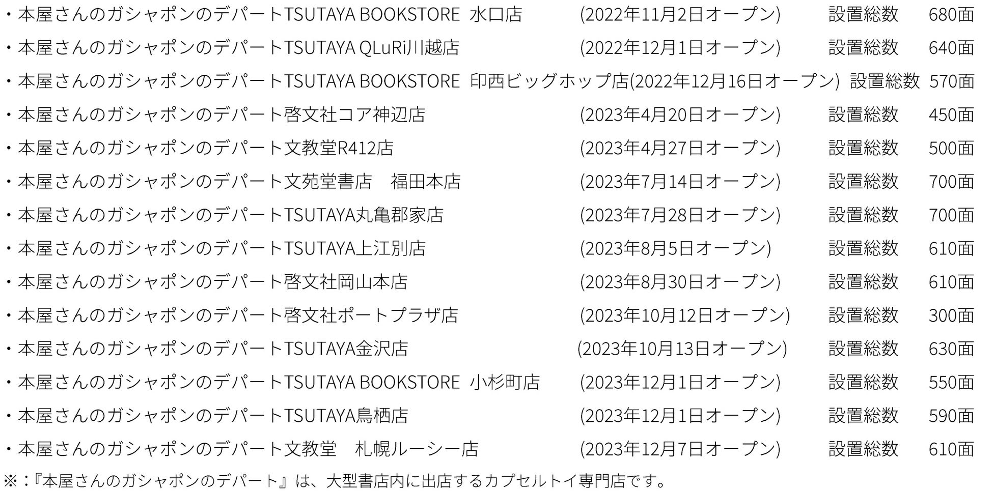 【全国展開中の『ガシャポンのデパート』・『本屋さんのガシャポンのデパート※』:計102店舗】