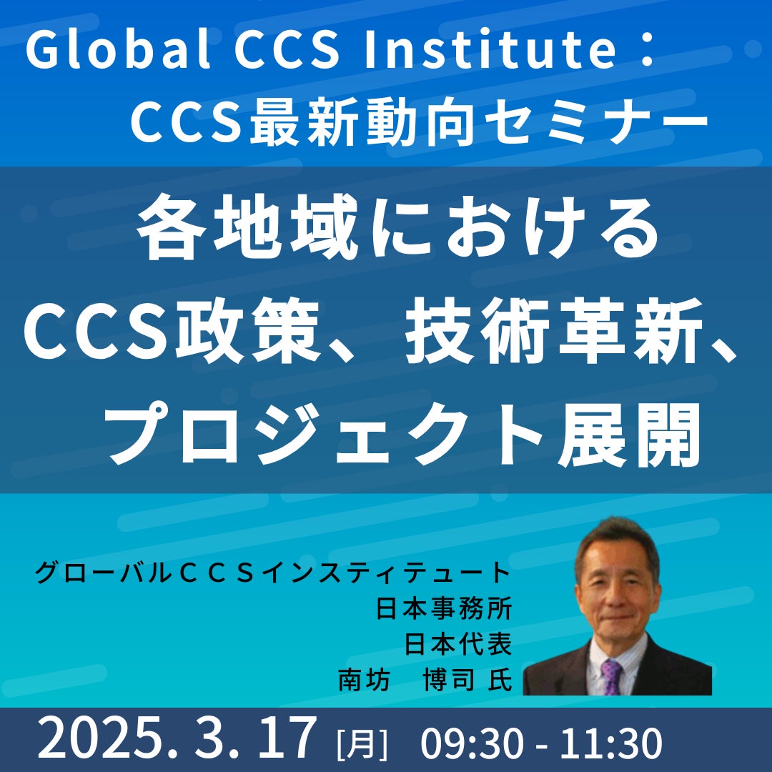 【JPIセミナー】Global CCS Institute「各地域におけるCCS政策、技術革新、プロジェクト展開等その最新動向、普及課題と解決策」3月17日(月)開催