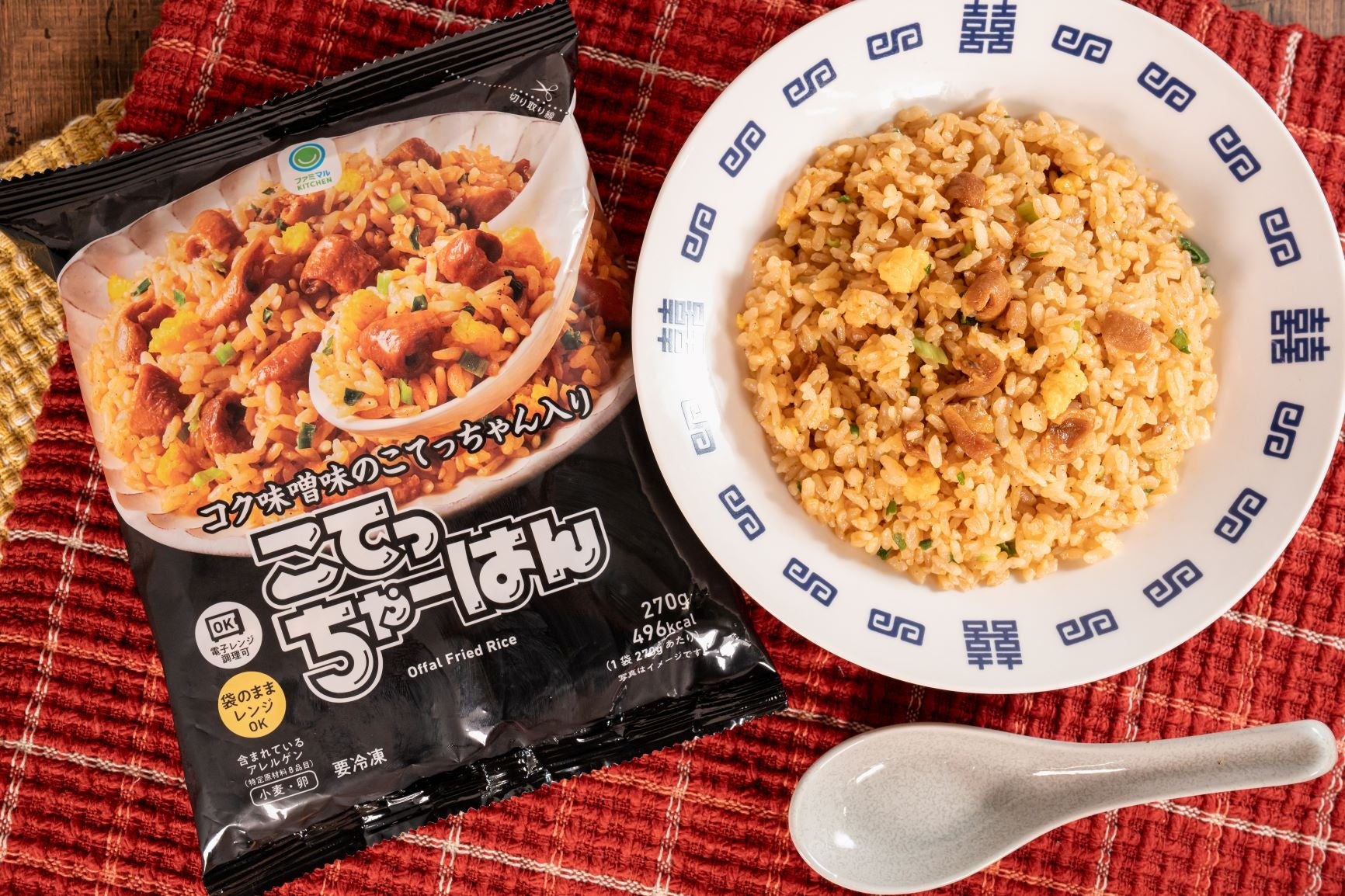 【内容】3種類の味噌をブレンドし、おろしニンニクとローストガーリックを使った深みとコクのあるたれであえた、専用の「こてっちゃん®」を具材としたチャーハンです。蒸気でふっくらと焚き上げたごはんを卵と一緒に炒め、具材とまぜて熱いうちに急速冷凍することでパラパラ感が損なわれないように仕上げました。