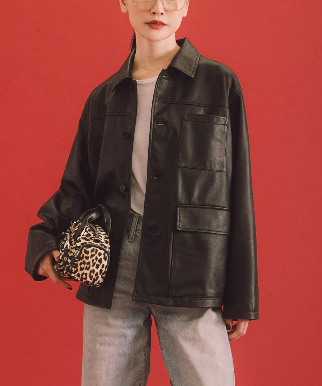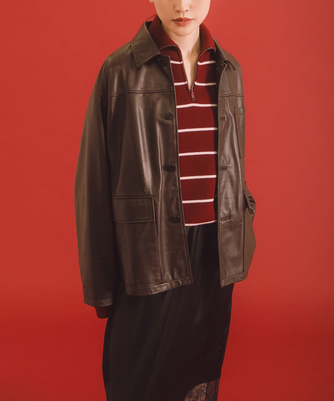 レザーの素材や表情を活かして、できるだけシンプルにそぎ落としたカバーオール。