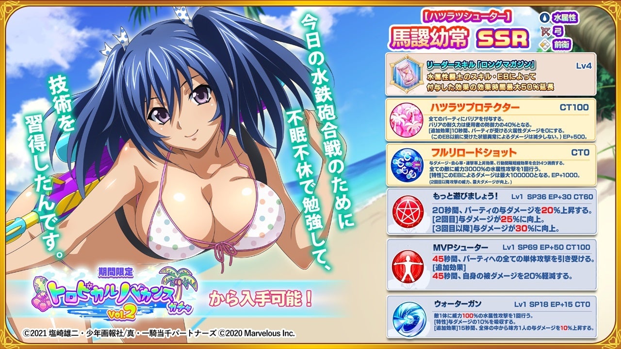 株式会社マーベラス(代表取締役社長 佐藤澄宣/所在地:東京都品川区)は、原作が20周年を迎えた人気シリーズ「一騎当千」のAndroid/iOS向けゲームアプリ『一騎当千エクストラバースト』で、2022年7月5日(火)より、開催中のイベント「南の島のバンバン☆シューティング」を開始したことをお知らせいたします。