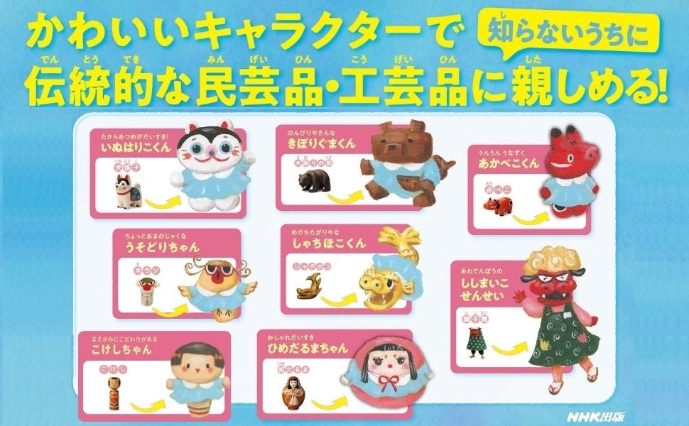 民芸品・工芸品をモチーフにした、個性豊かなたくさんのキャラクターたちが、幼稚園を舞台に大騒ぎ! 笑いと驚きと温かさがぎゅっと詰まった、絵本作家・かのうかりんさんによるオリジナル絵本。