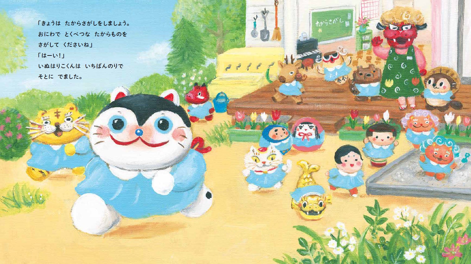 本書は、いぬはりこくんたち「からくさようちえん」の園児が、幼稚園で"特別な宝物"を探すという物語です。