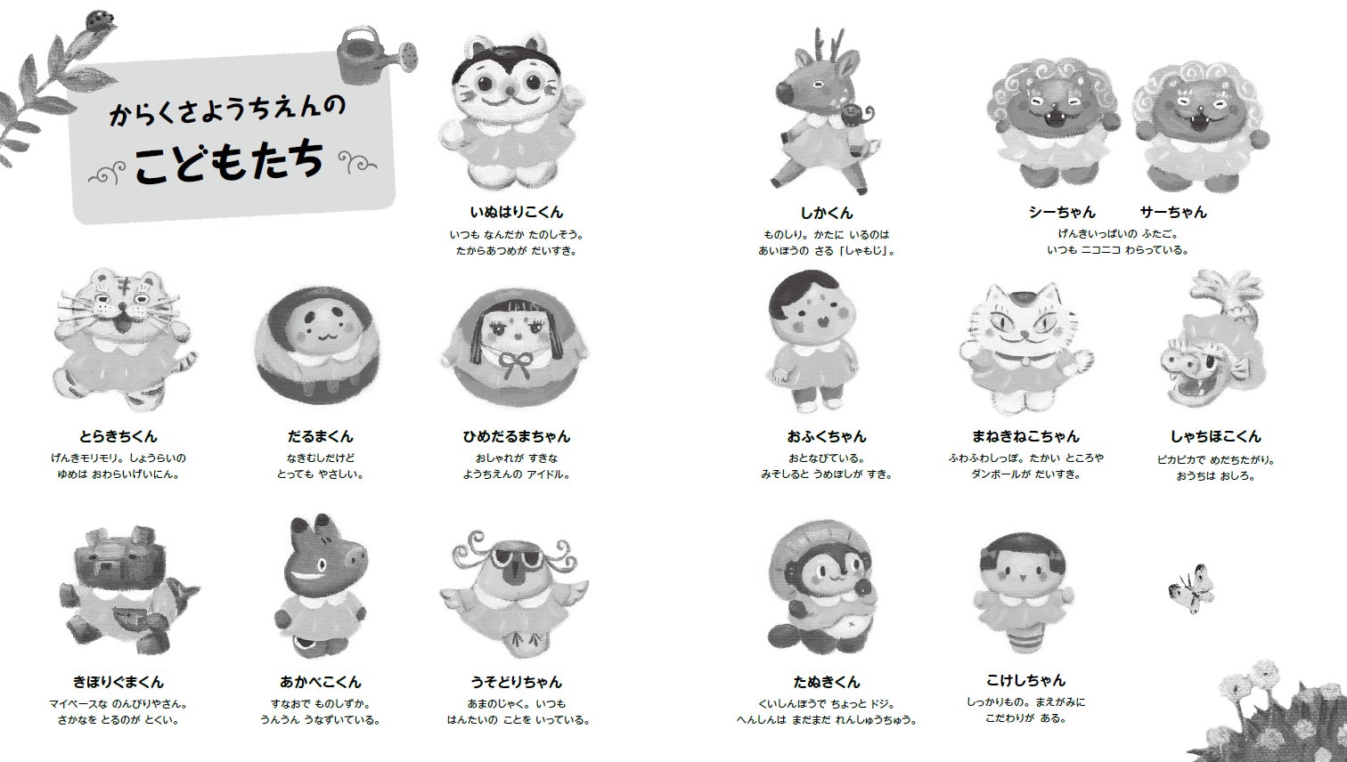・郷土玩具がモデルなのがいいし、とてもかわいい。見返しにキャラクター紹介が載っているのも楽しい!