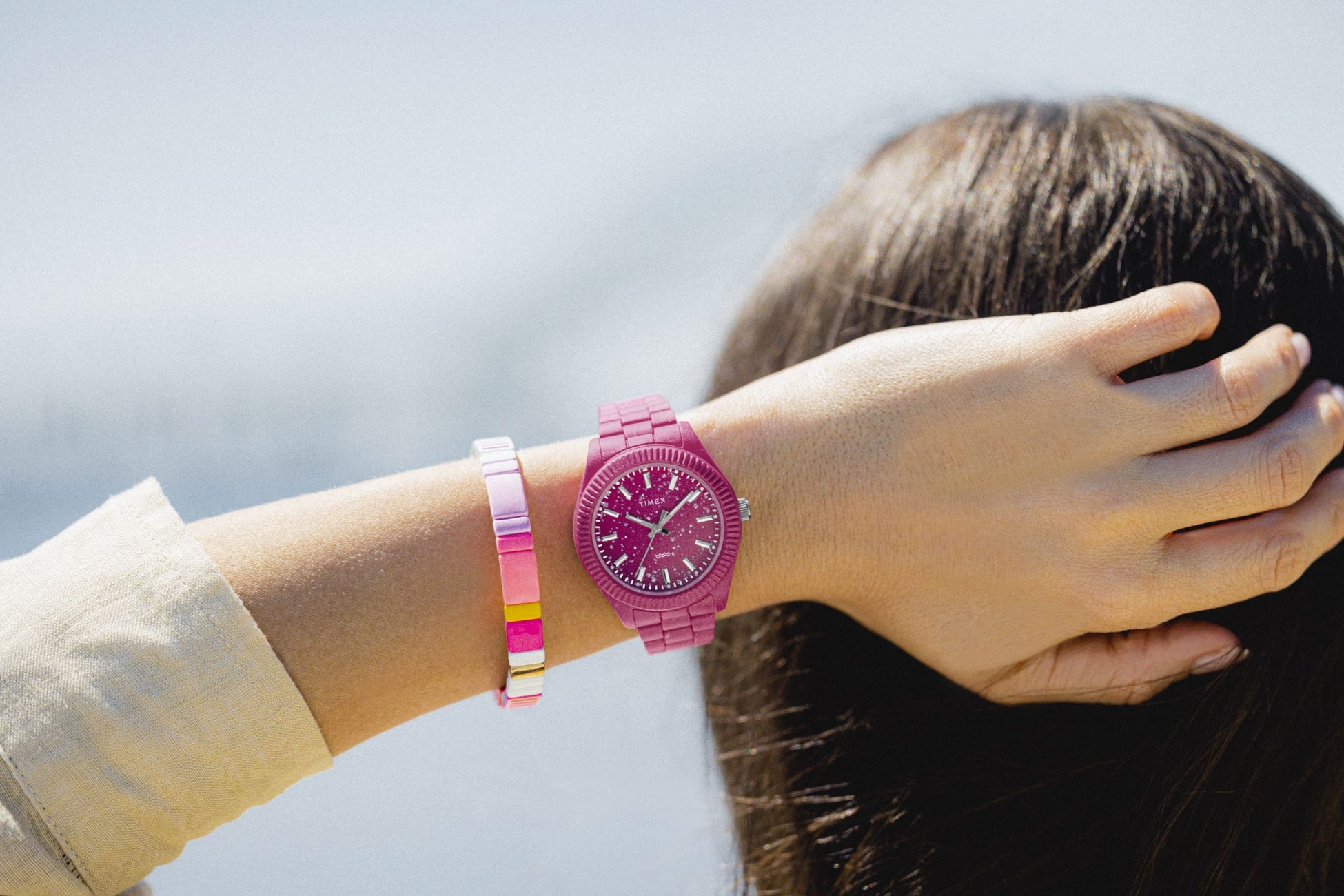 ■品番 TW2V77200 : ピンク、TW2V77300 : パープル ■スペック クォーツ / 37mm / 3気圧防水 / 海洋プラスチックケース&バンド |